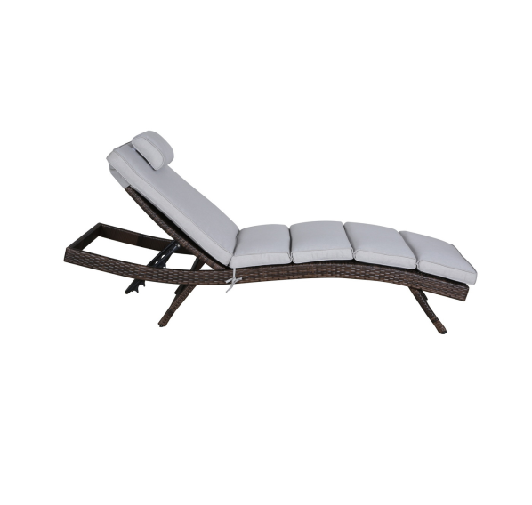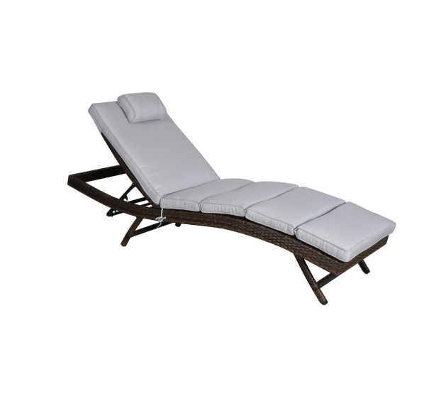 В комплекте прилагается матрас светло-серого цвета из водостойкой ткани. Мебель натуральных расцветок гармонично вписывается на пляже, в саду, на террасе.