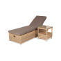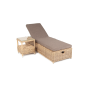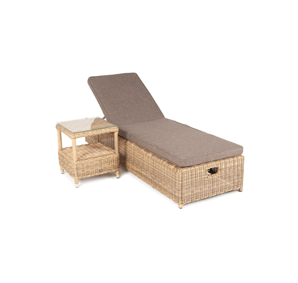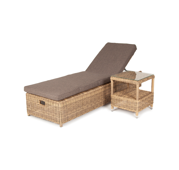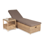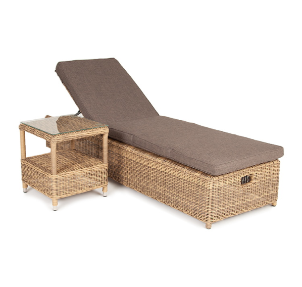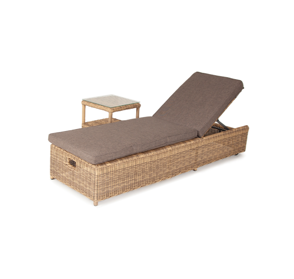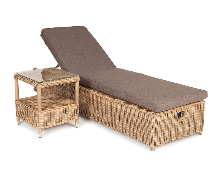 Дополнительно к шезлонгу прилагаются мягкие подушки из полиэфирной ткани, которая обладает стойкостью к ультрафиолету, воде. Съёмные чехлы серого цвета. Для удобства можно отрегулировать наклон спинки лежака.