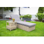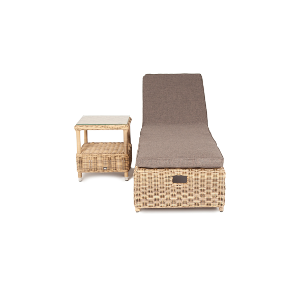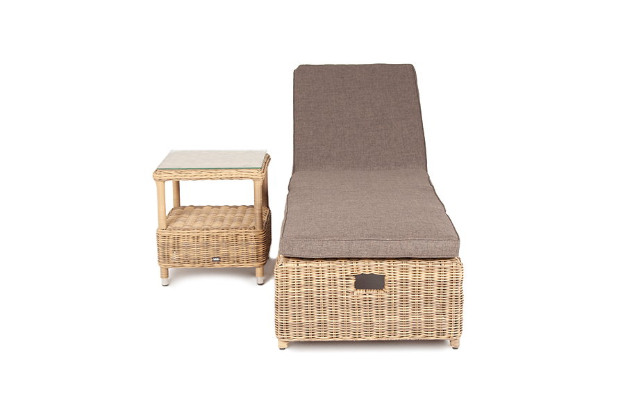 Мебельные изделия выполнены из круглого искусственного ротанга соломенного цвета. Легкость и прочность обеспечивает каркас из алюминия, который способен выдержать до 150 кг.