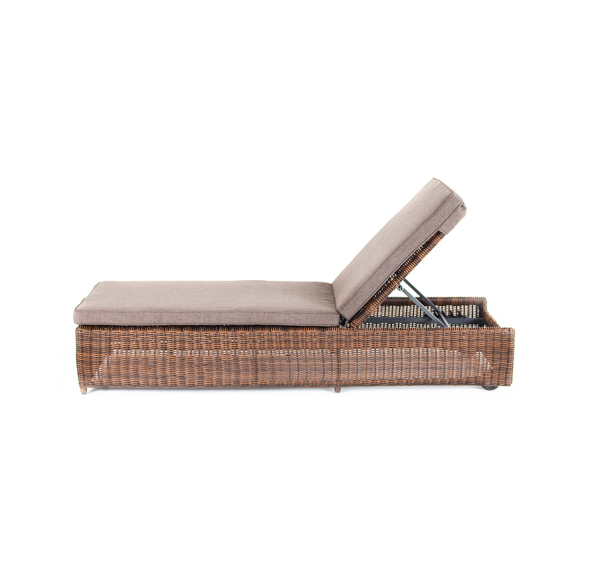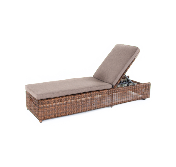 «Рим» плетеный шезлонг из искусственного ротанга коричневого оттенка прекрасно дополнит пространство для отдыха на открытом воздухе.