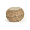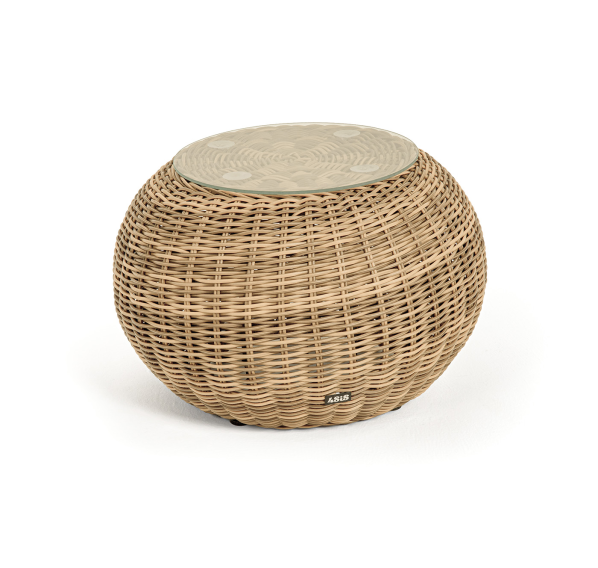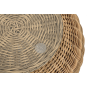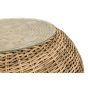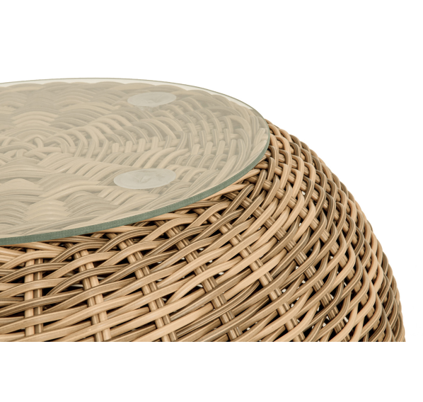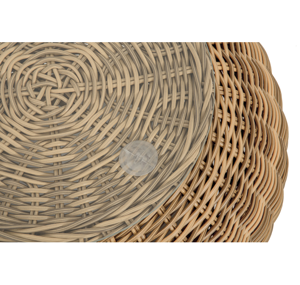 Каркас изготовлен из легкого алюминия и оплетен искусственным ротангом натурального соломенного оттенка. Поверхность столика дополнена стеклянной столешницей из закаленного стекла, толщиной 5 мм.