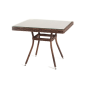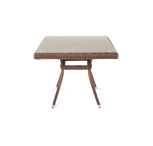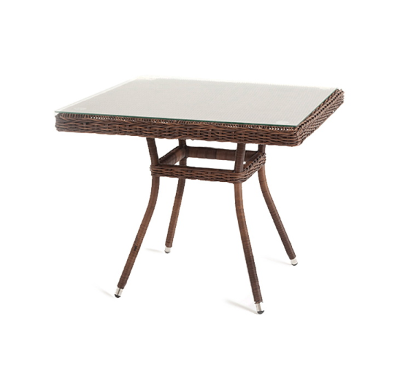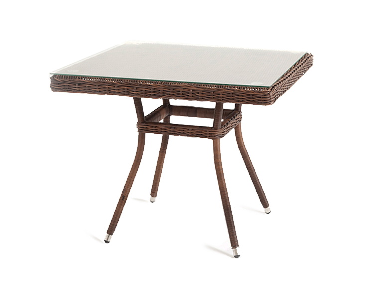 Плетеный квадратный столик «Айриш» изготовлен из легкого, но устойчивого к деформациям алюминия, вручную оплетенного искусственным ротангом насыщенного шоколадного оттенка.