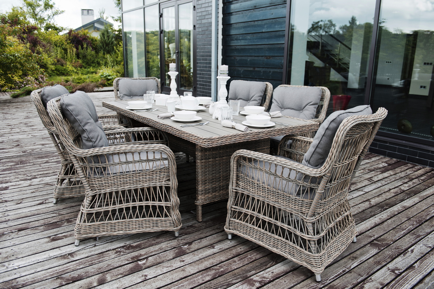 Плетеный обеденный стол «Цесена» для большой компании. Подойдет для организации лаунж-зоны в саду, на летней террасе отеля или ресторана.