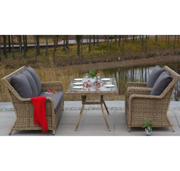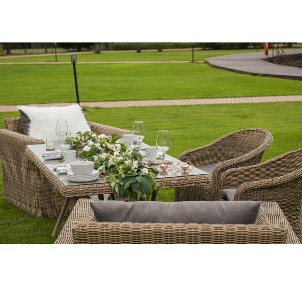 Размеры плетеного стола: 1600×900×750 мм. Рассчитан на 6 персон.