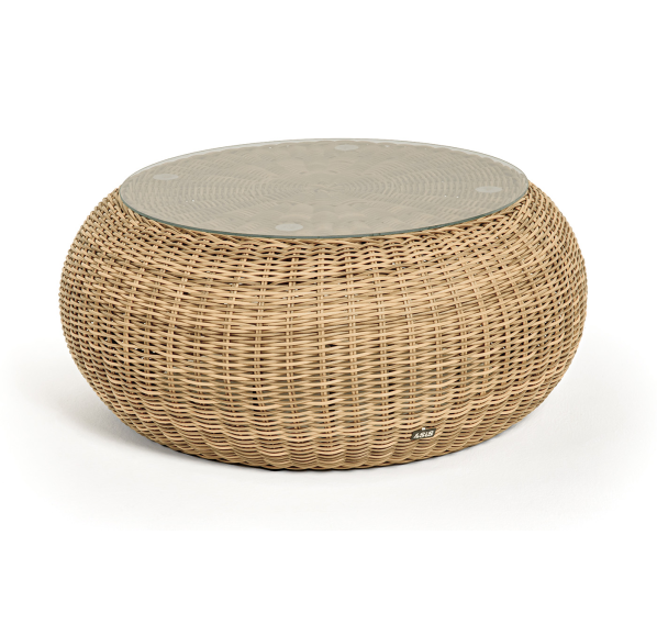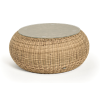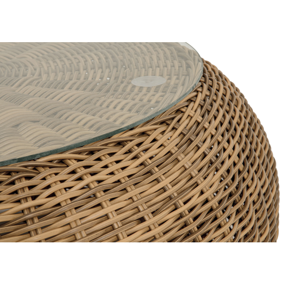 Каркас столика изготовлен из алюминия, вручную оплетенного круглым искусственным ротангом.