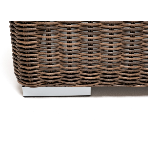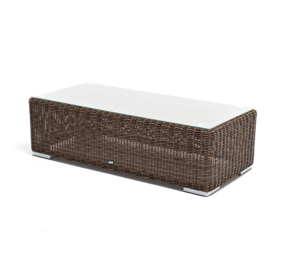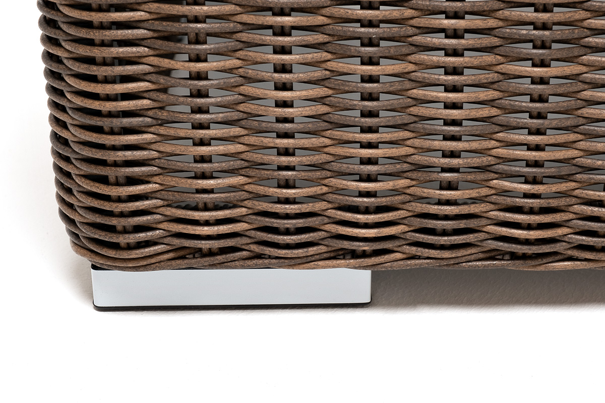 Каркас столика изготовлен из алюминия, вручную оплетенного круглым искусственным ротангом.