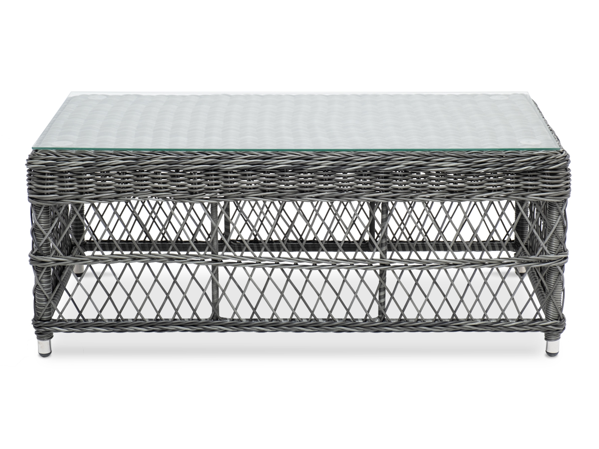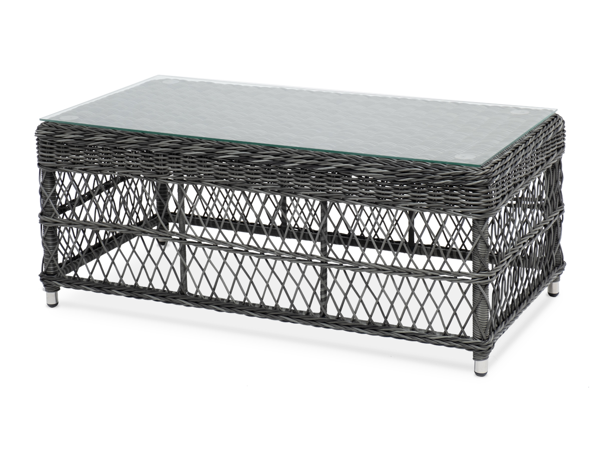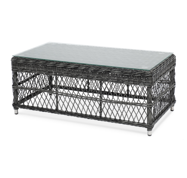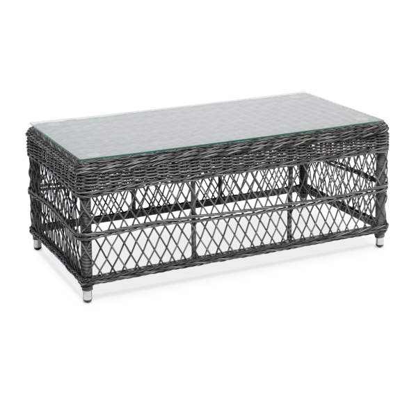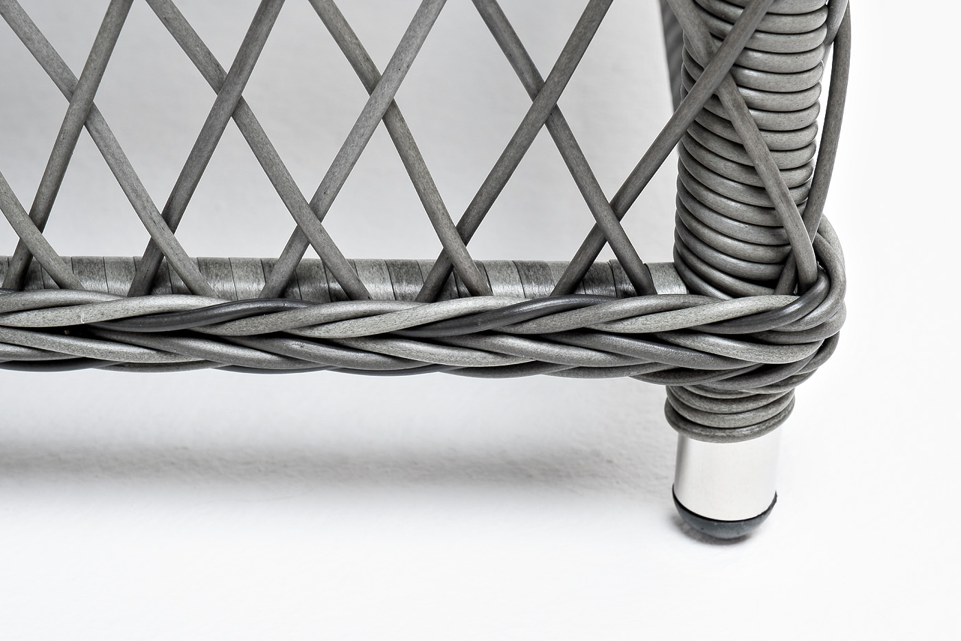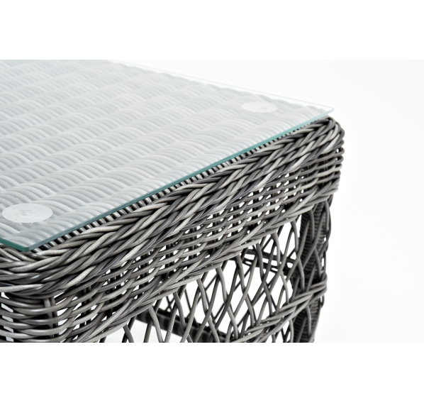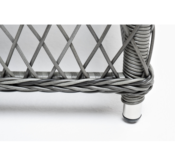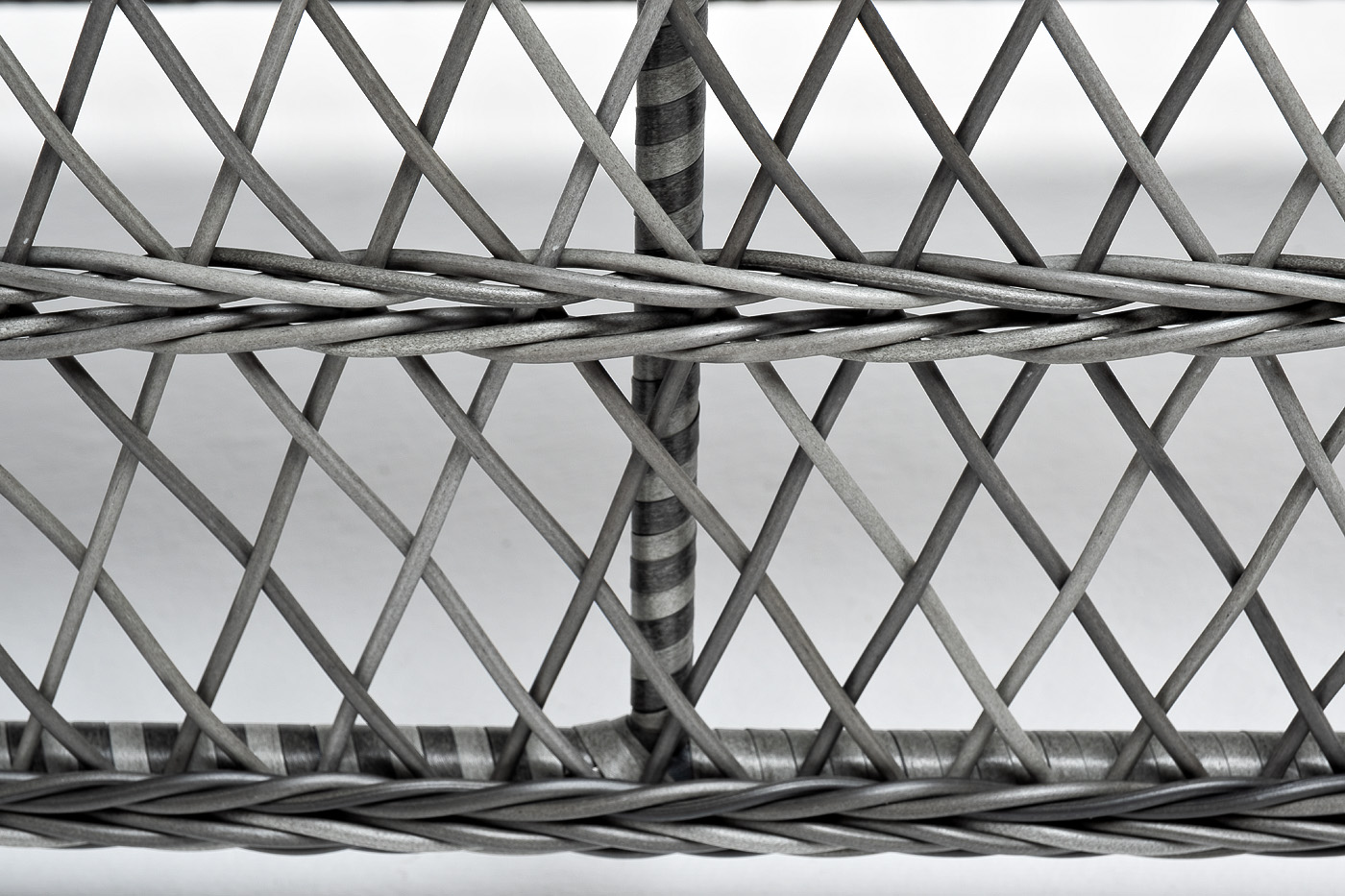 Каркас столика изготовлен из алюминия, вручную оплетенного круглым искусственным ротангом.
