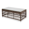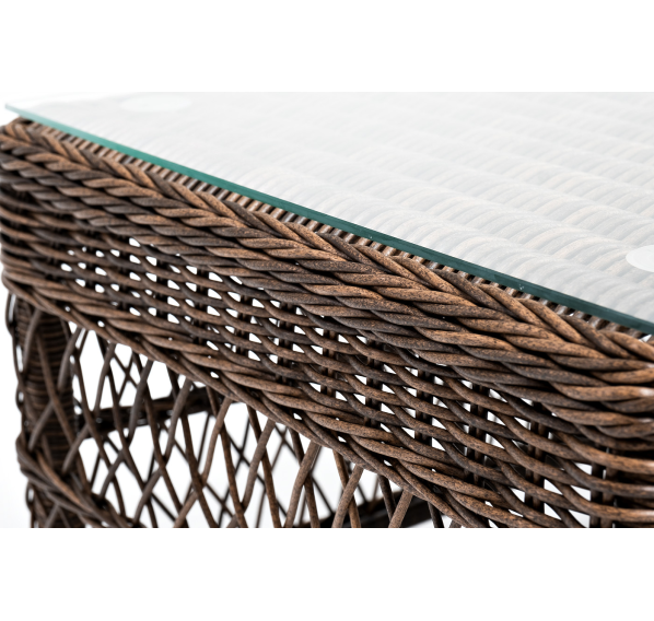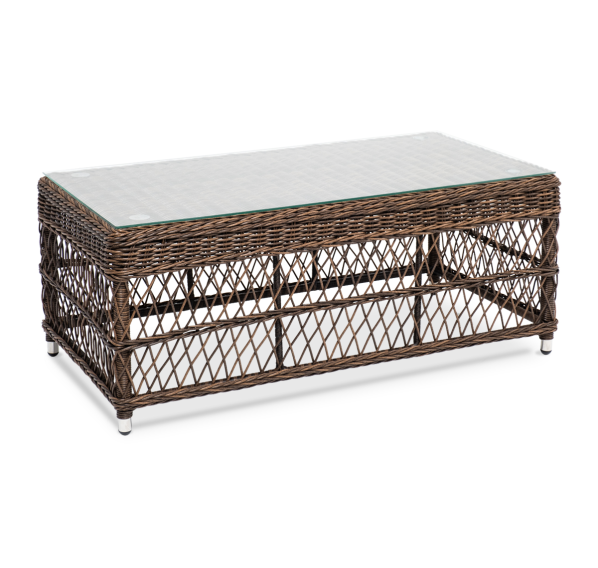 Журнальный столик «Гранд Латте» гармонично вписывается в зону отдыха, обустроенную на свежем воздухе. Размер модели – 1120×570×450 мм.