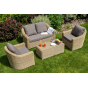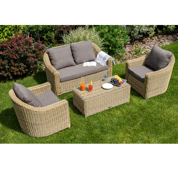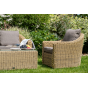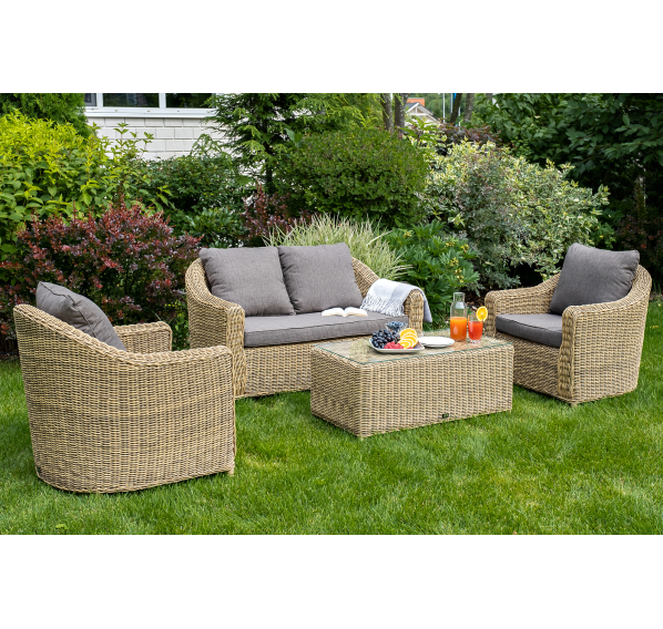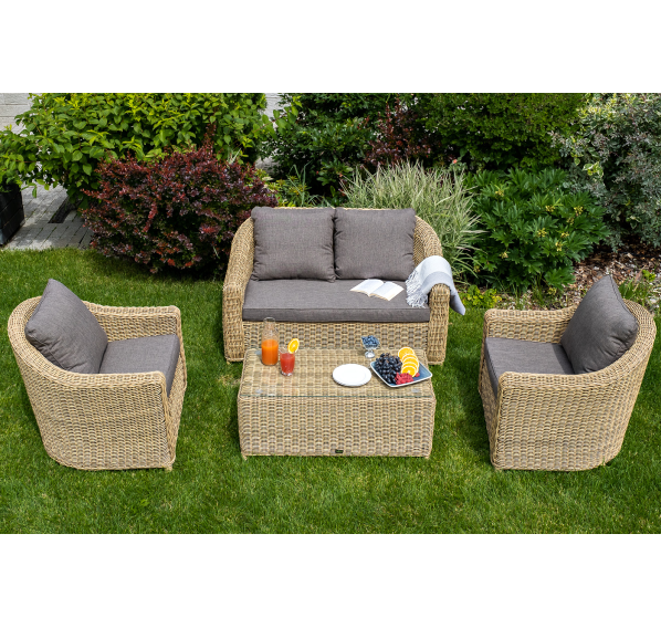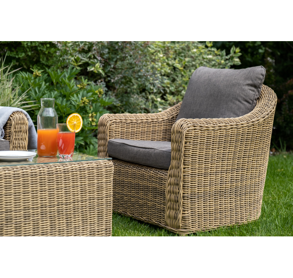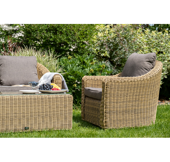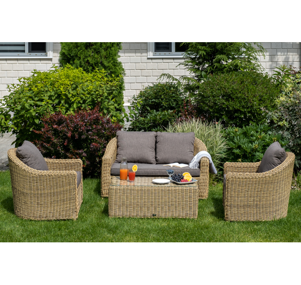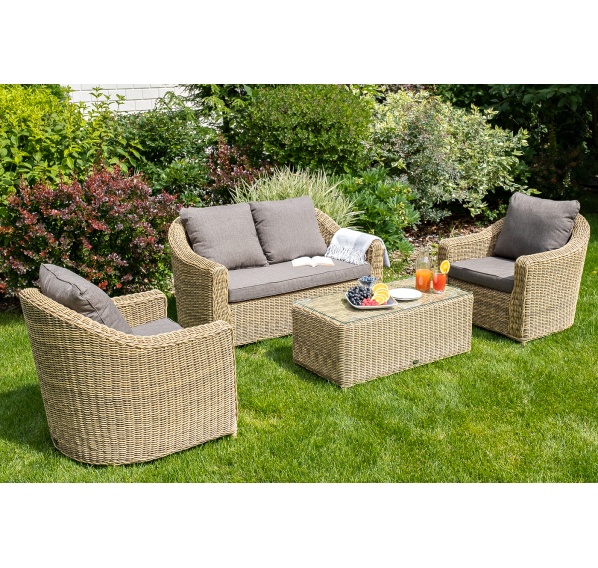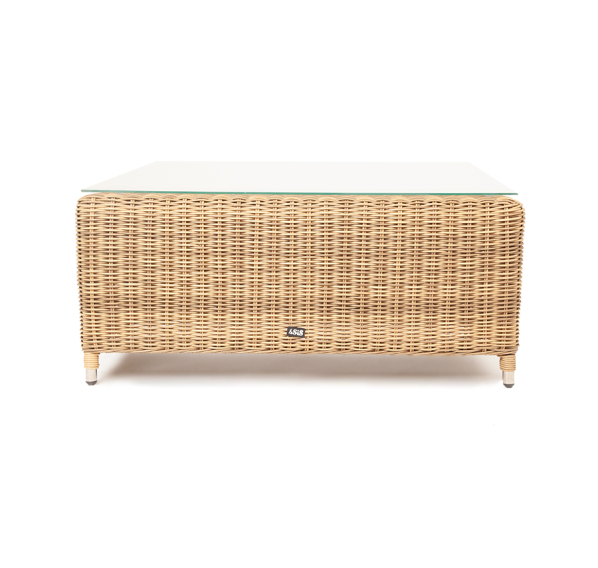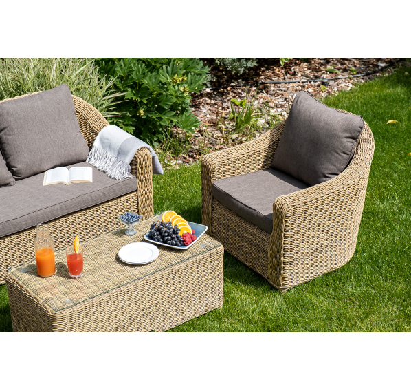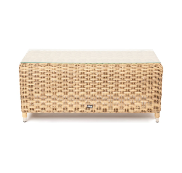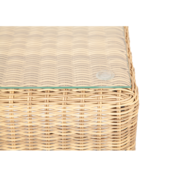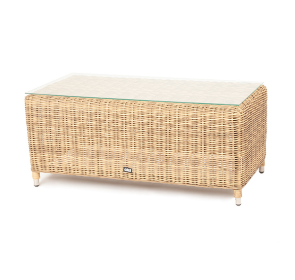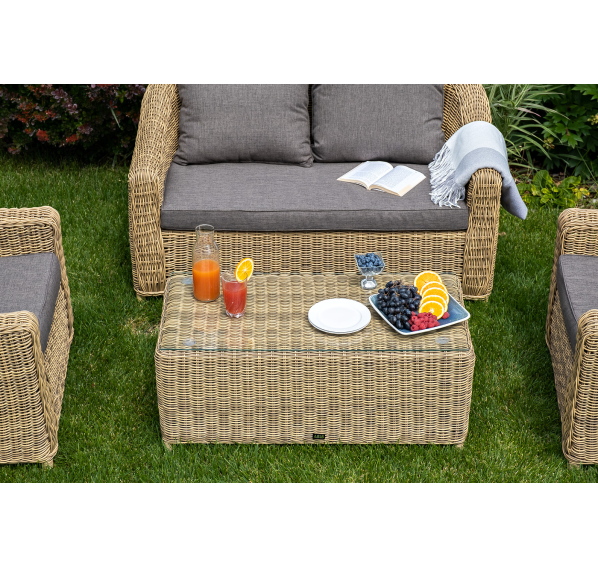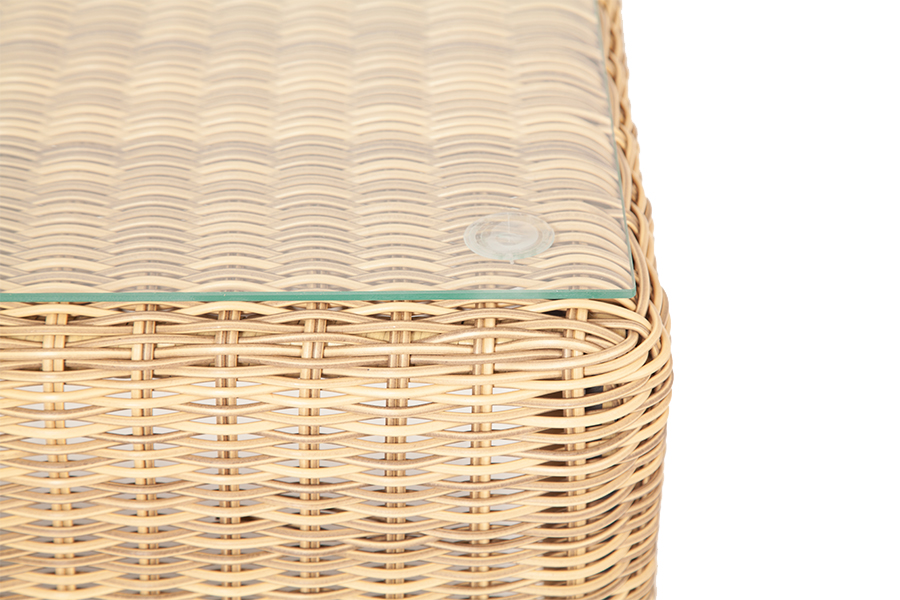 Журнальный столик из круглого искусственного ротанга «Кон Панна» соломенного цвета, подходит для эксплуатации при различных погодных условиях.
