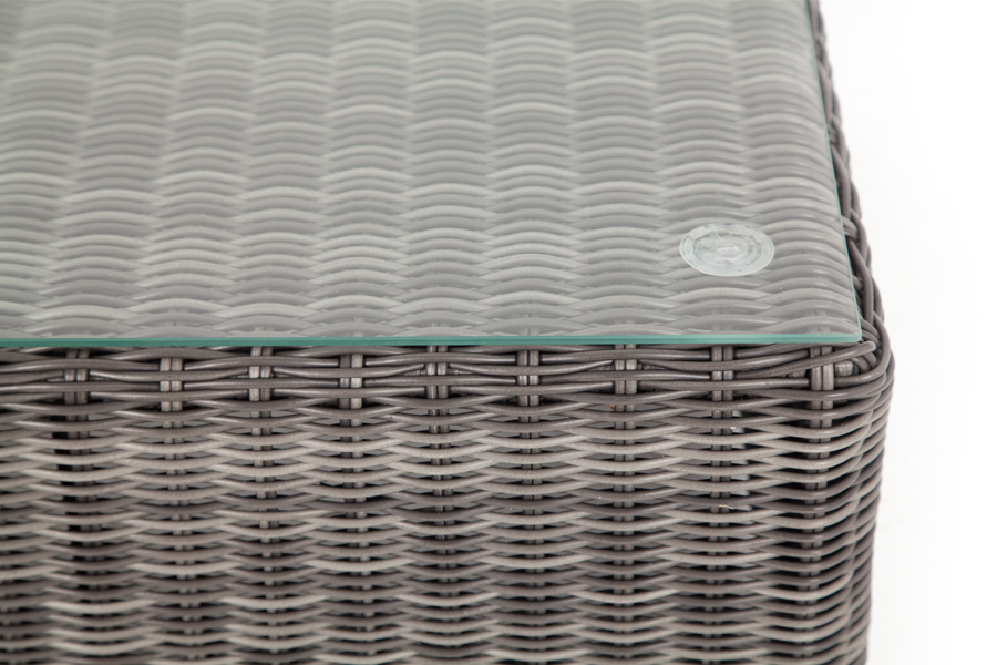 Компактные габариты позволяют удобно разместить мебельный элемент в месте с ограниченным свободным пространством. Столик имеет прочный алюминиевый каркас. Ручное круглое плетение сделано из искусственного ротанга и представлено в графитовом цвете.