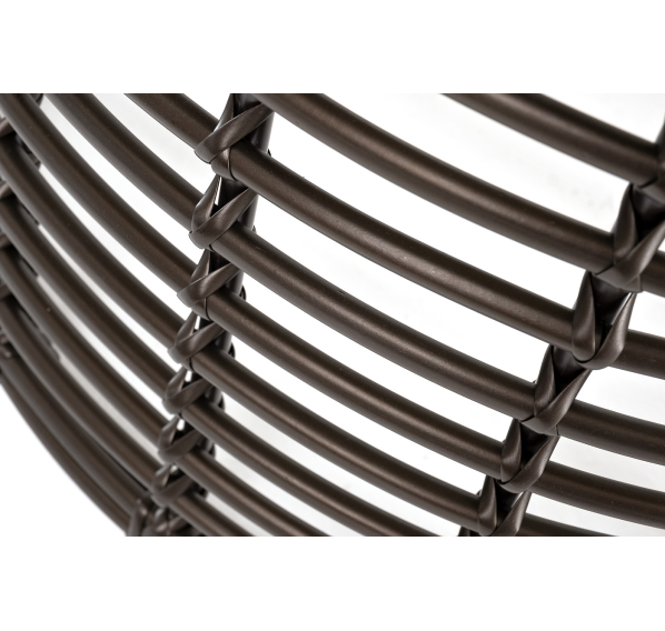 Каркас столика изготовлен из алюминия, вручную оплетенного круглым искусственным ротангом.