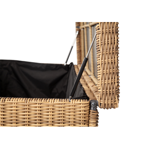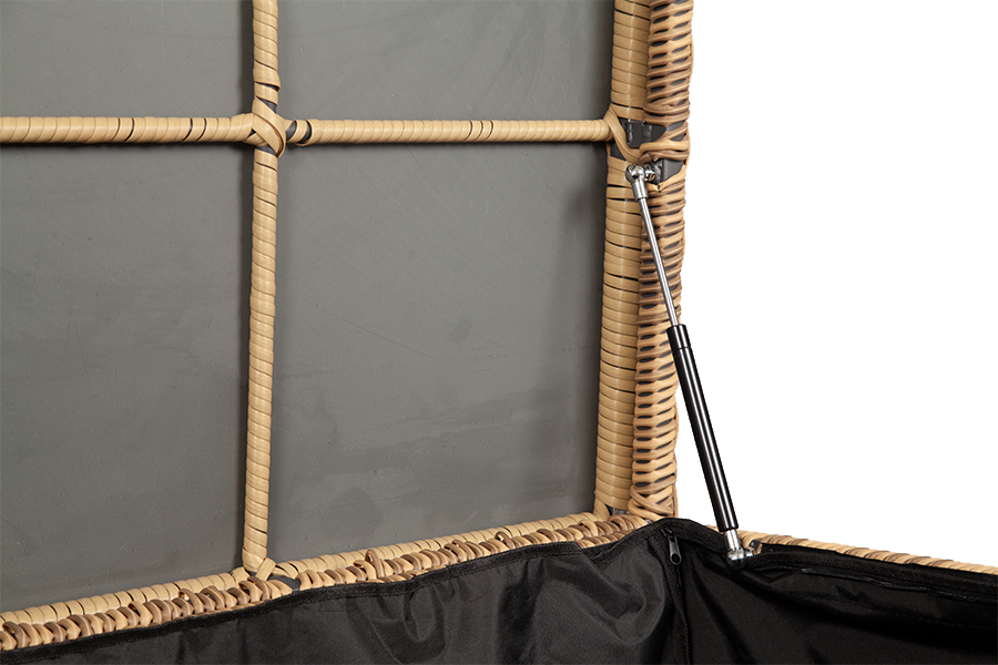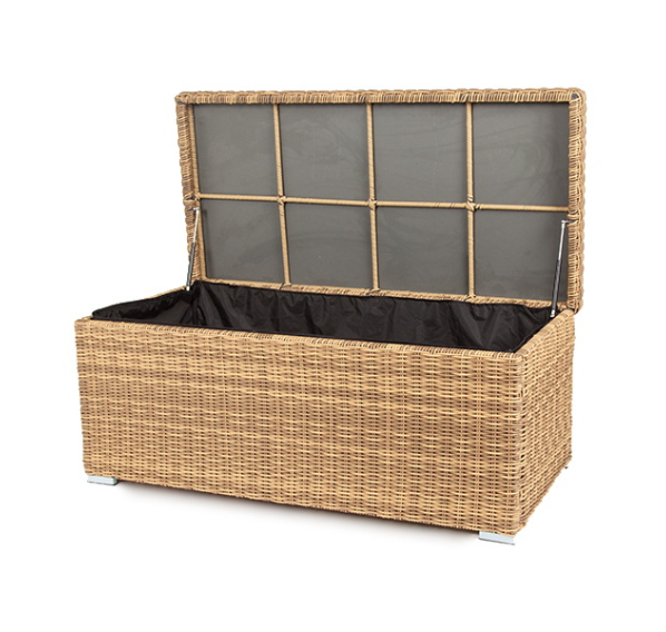 Сундук предназначен для хранения текстильных изделий, водонепроницаем, поэтому можно использовать на улице, не боясь осадков.