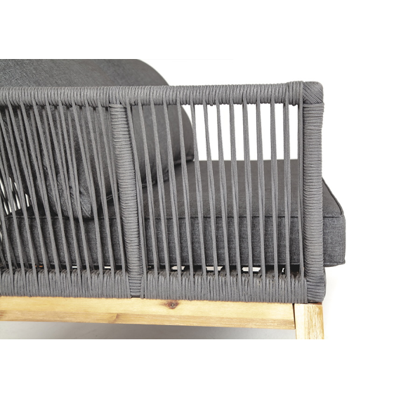 «Барселона» диванный модуль боковой правый входит в состав дивана с аналогичным названием. Имеет деревянный каркас, оплетенный синтетической полиэфирной лентой - роупом серого цвета.