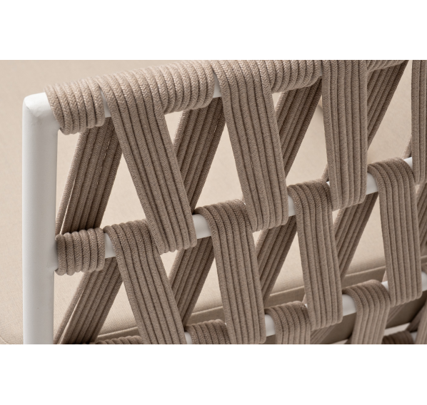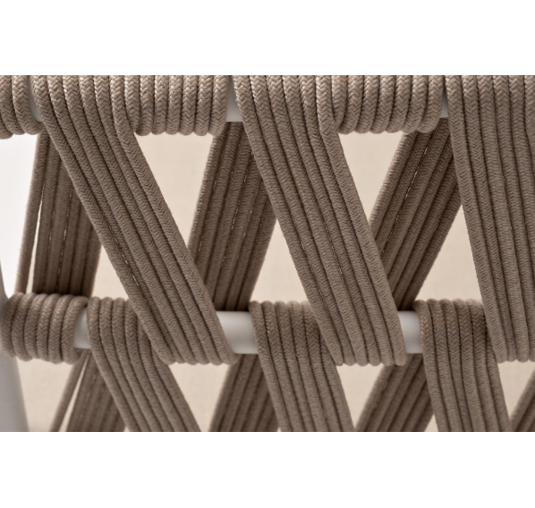 Боковины каркаса вручную оплетены роупом - эластичными синтетическими лентами, изготовленными из высокопрочных полиэфирных волокон. Цвет оплетки - бежевый.