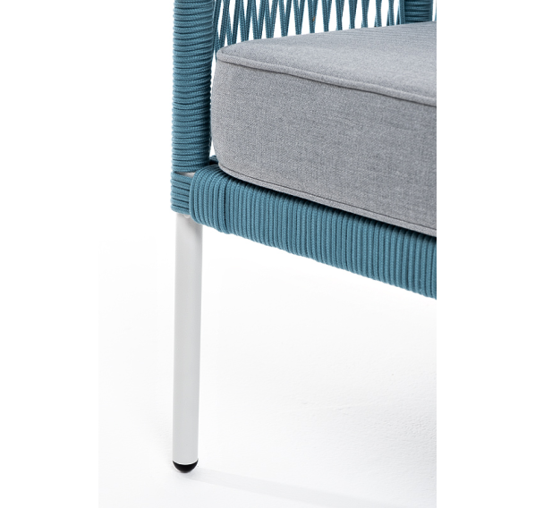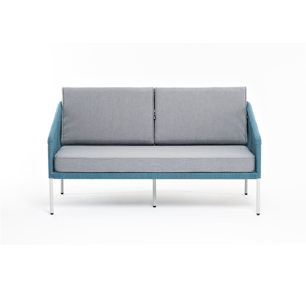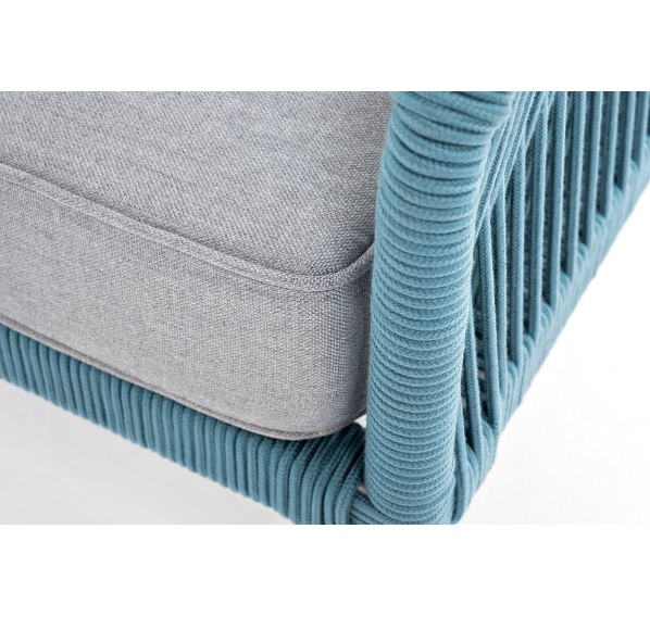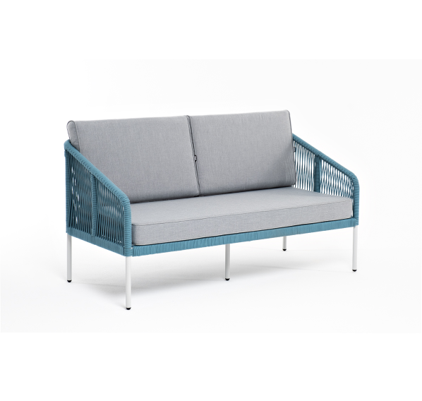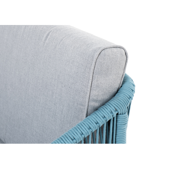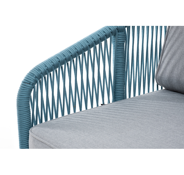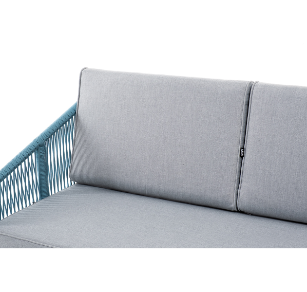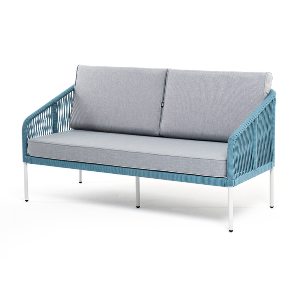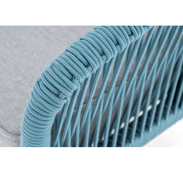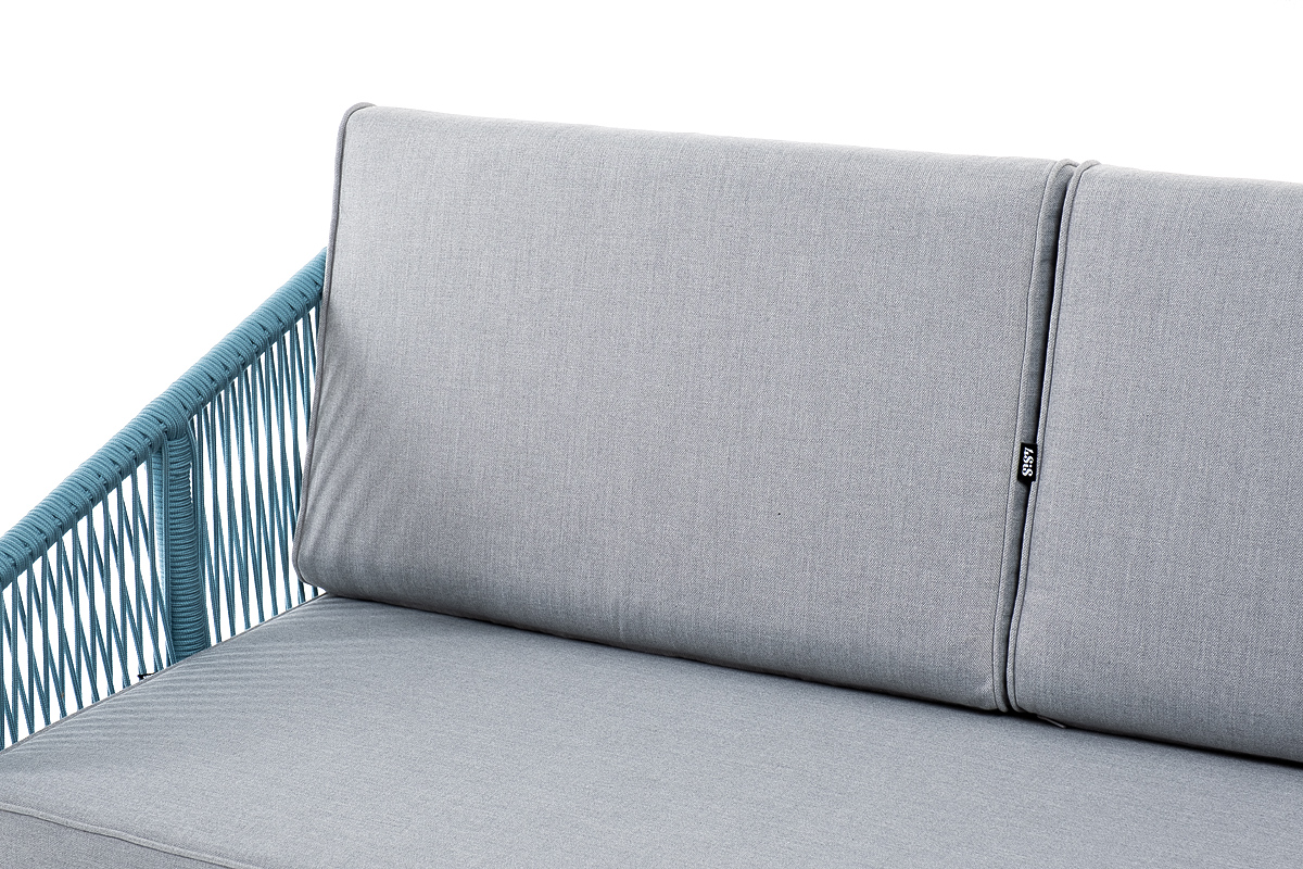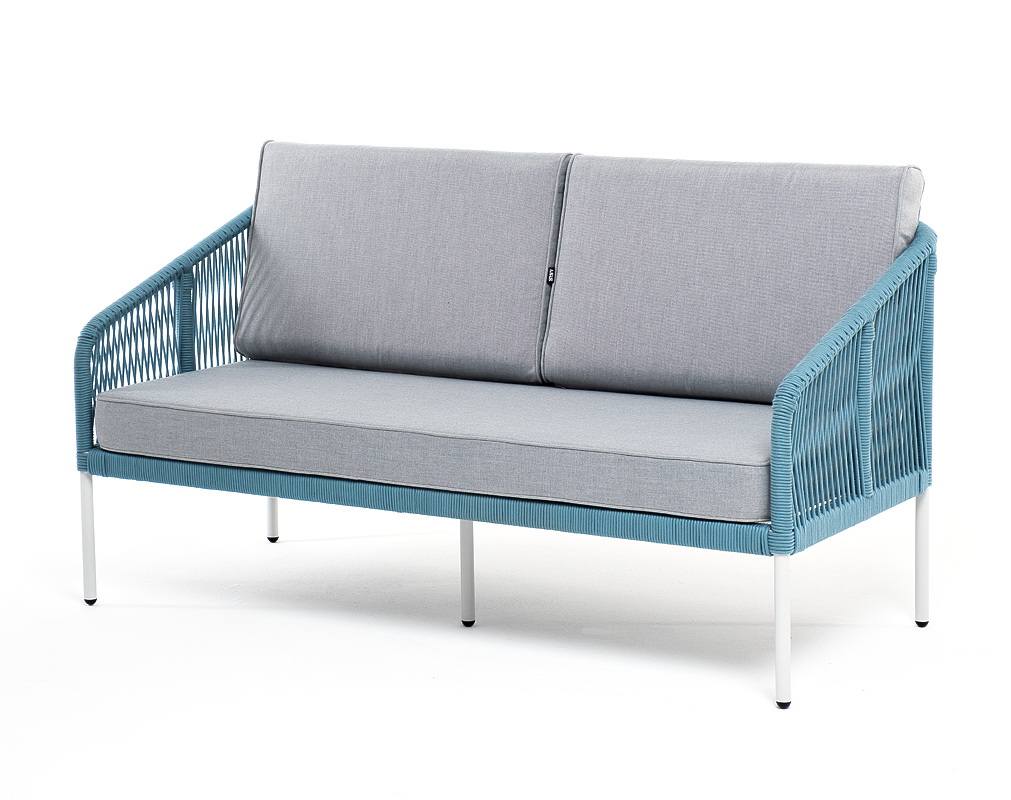 Двухместный диван «Канны» плетеный бирюзовым роупом - эластичными синтетическими лентами, выполненными из полиэфирных волокон.