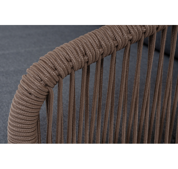 Трехместный диван «Канны» - отличный выбор для создания уютной атмосферы на террасе, в саду или на веранде. Выполнен из круглого роупа (эластичные ленты) в коричневом цвете, который придает ему роскошный вид.