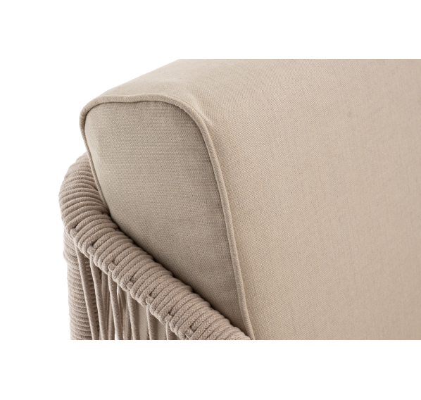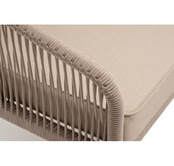 Модуль имеет алюминиевый каркас, окрашенный порошковой краской в белый цвет. Боковины каркаса вручную оплетены роупом - эластичными синтетическими лентами, изготовленными из высокопрочных полиэфирных волокон. Цвет оплетки - бежевый.