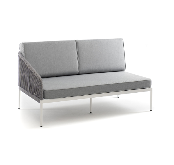 Модуль имеет алюминиевый каркас, окрашенный порошковой краской в светло-серый (RAL7035) цвет. Боковины каркаса вручную оплетены роупом - эластичными синтетическими лентами, изготовленными из высокопрочных полиэфирных волокон. Цвет оплетки - серый.