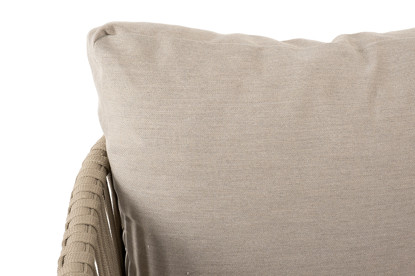 Подушки состоят из наполнителя и съёмных чехлов, которые обработаны влагоотталкивающей пропиткой. Материал - 100% полиэстер, плотностью 300гр/м2. Тип ткани - рогожка.
