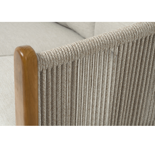 Боковины каркаса вручную оплетены 6 мм роупом - эластичными синтетическими лентами, изготовленными из высокопрочных полиэфирных волокон. Цвет оплетки - бежевый.
