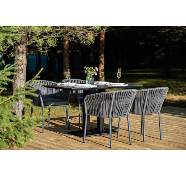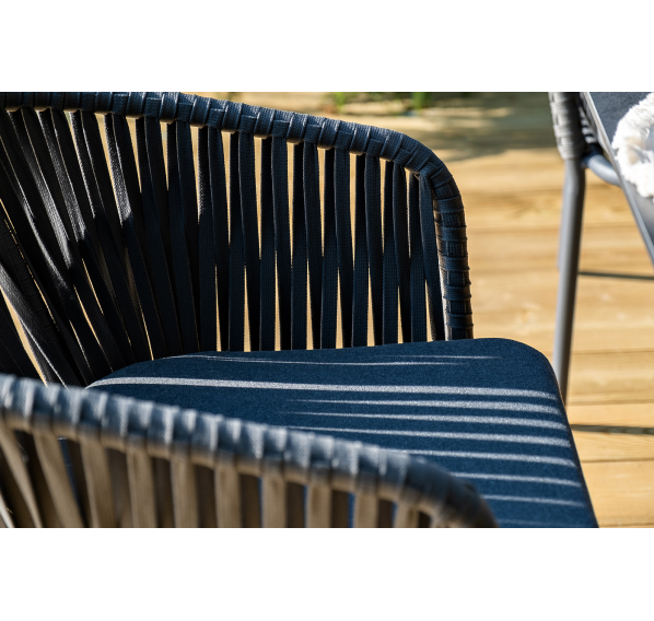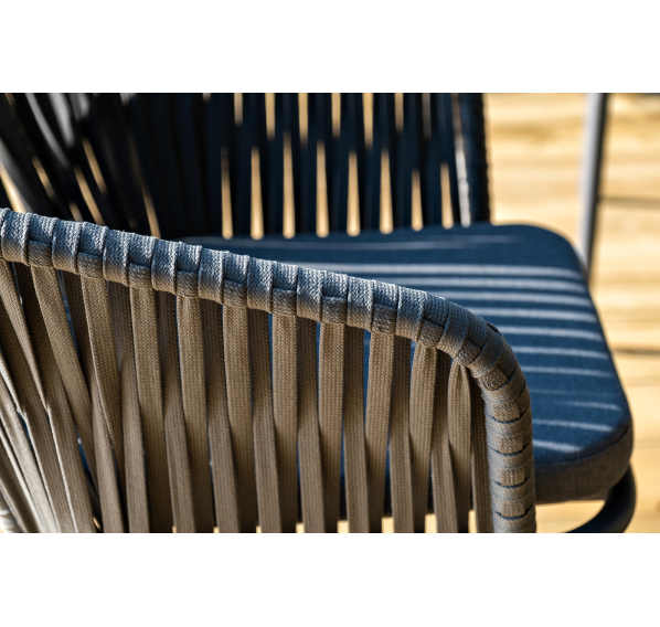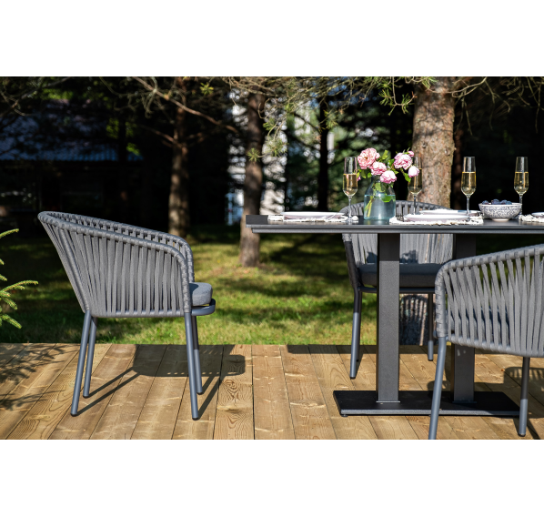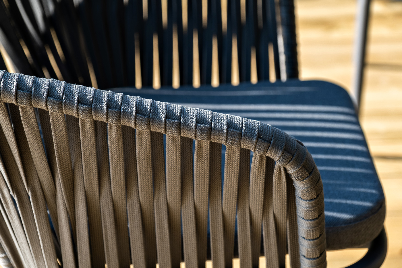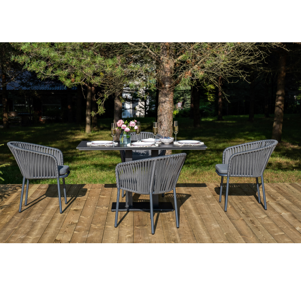 - 4 плетеных стула «Бордо» из плоского роупа, размером - 570×620×775 мм, цвет роупа - серый, каркас - темно-серый (RAL7024).