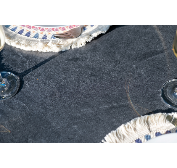 - Стол «Каффе» из HPL, размер столешницы - 140×70 см, цвет «серый гранит», подстолье двойное черное металл.