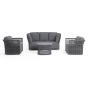 Кресла и диван идут в комплекте с мягкими подушками в чехлах темно-серого цвета.