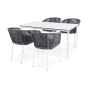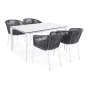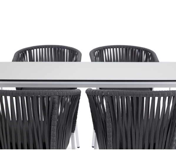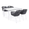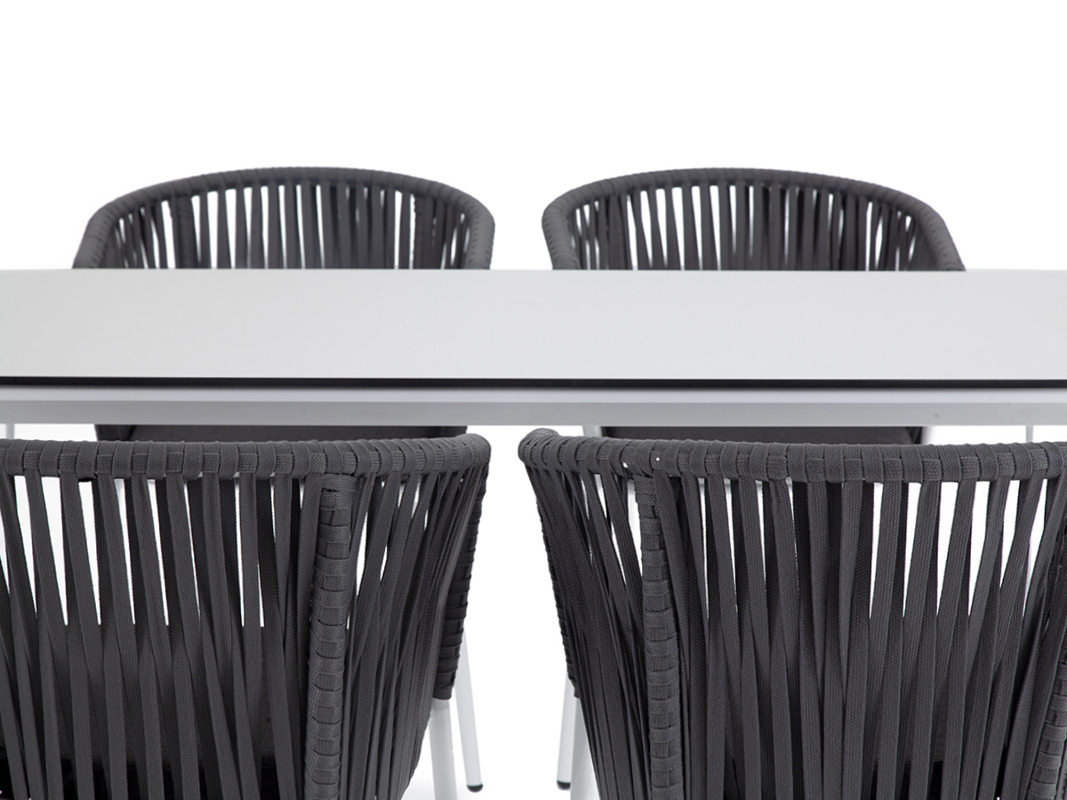 - 4 плетеных стула «Бордо» из плоского роупа, размером - 570×620×775 мм, цвет роупа - серый, каркас - белый.
