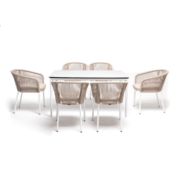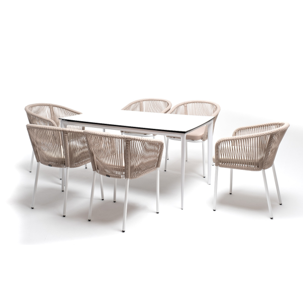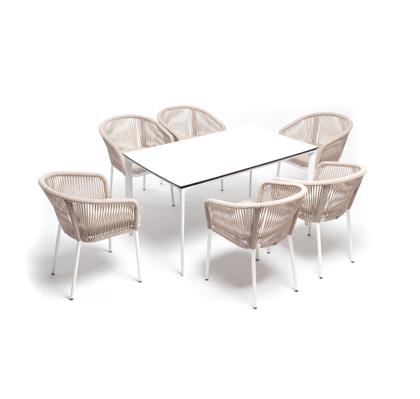 - 6 плетеных стульев «Марсель» из роупа, размером - 570×620×77,5 мм, цвет роупа - бежевый, каркас - белый.