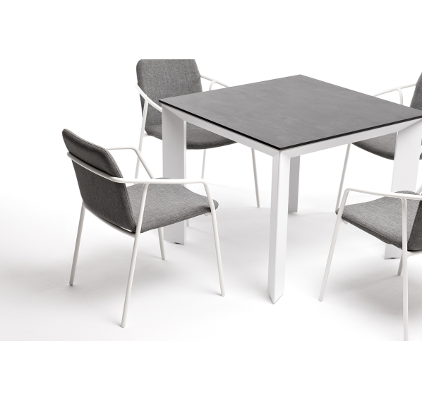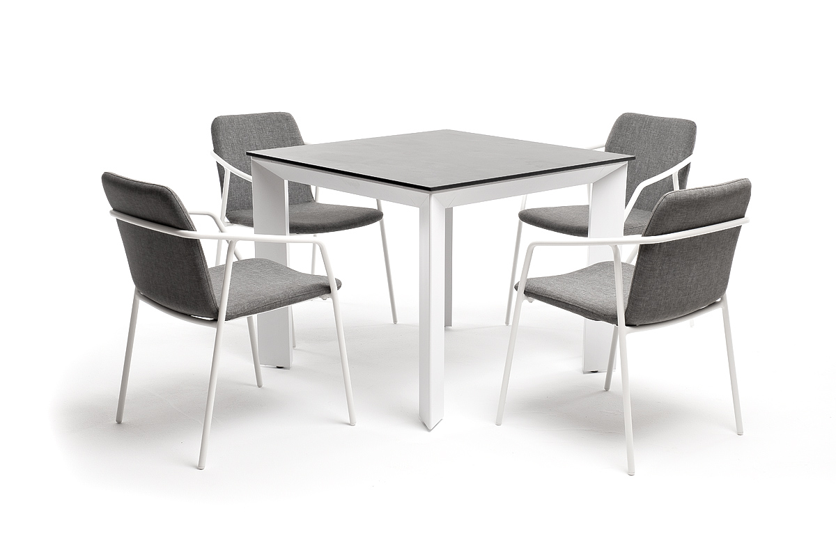 - Стол «Венето» со столешницей из HPL-пластика, размер столешницы - 900×900 мм, цвет - «серый гранит». Высота стола - 750 мм