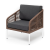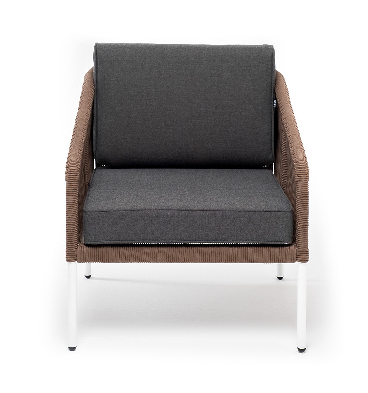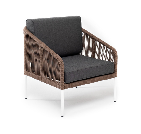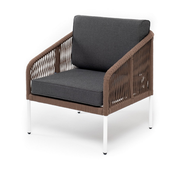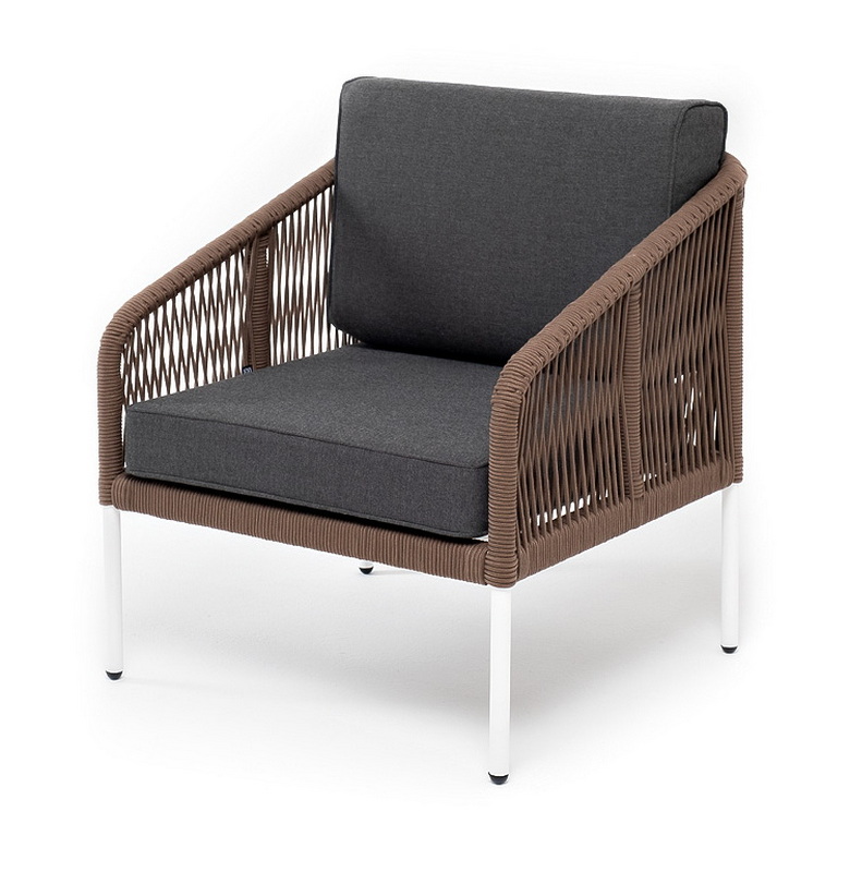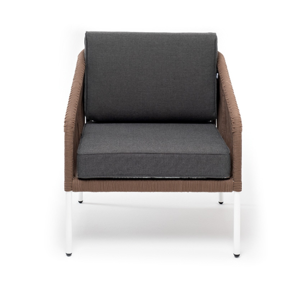 Плетеное кресло «Канны» идеально подходит для комфортного отдыха. Прочный каркас из алюминия окрашен в белый цвет порошковой износостойкой краской. Покрытие прочное, устойчивое к возникновению сколов и ржавчины.