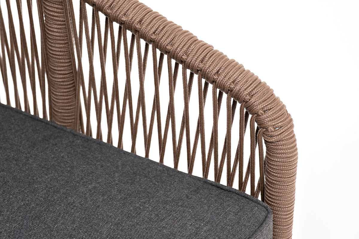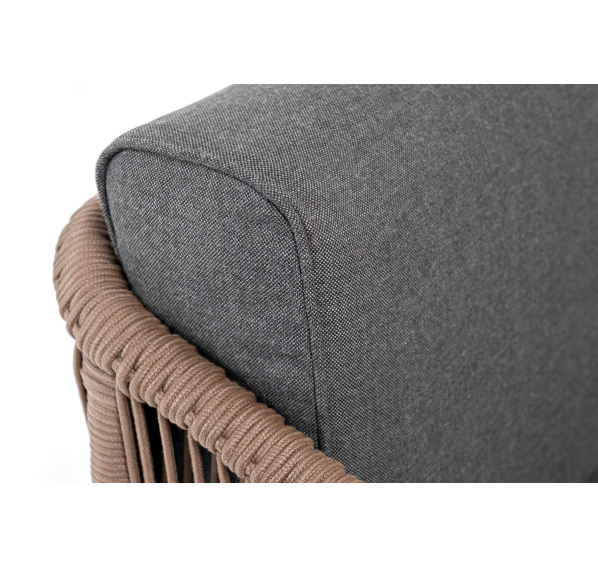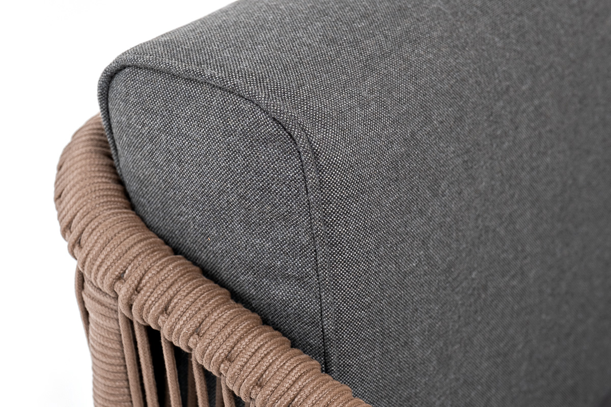 Приятное дополнение − подушки со съёмными чехлами серого цвета из влагоотталкивающей ткани, устойчивой к ультрафиолетовым лучам и неблагоприятным атмосферным воздействиям.