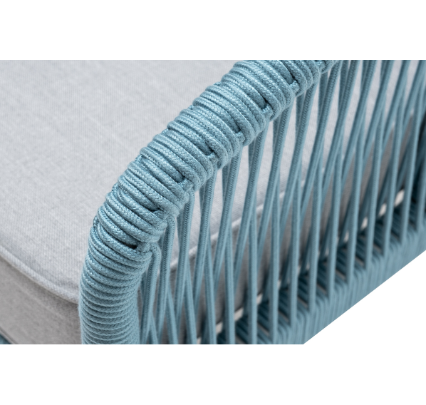 Плетение выполнено из прочного роупа бирюзового цвета, который добавляет яркости и живописности в ваш интерьер.
