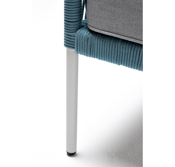 Каркас выполнен из алюминия, который окрашен светло-серой износостойкой порошковой краской. Это обеспечивает прочность и долгий срок службы кресла. Фактура покрытия - муар, придающая каркасу текстурную глубину и эстетику.