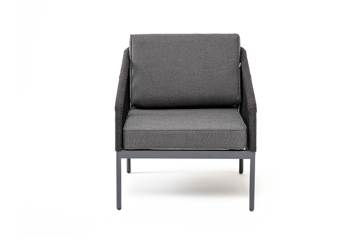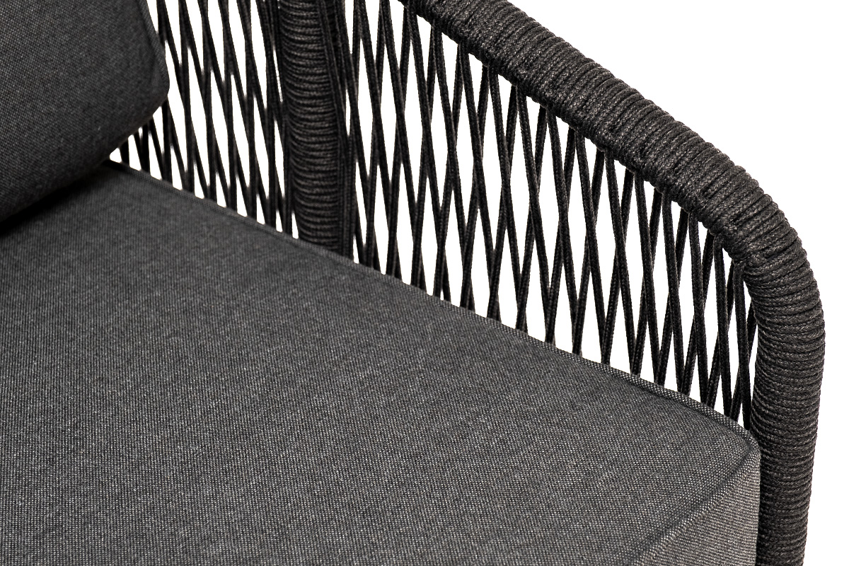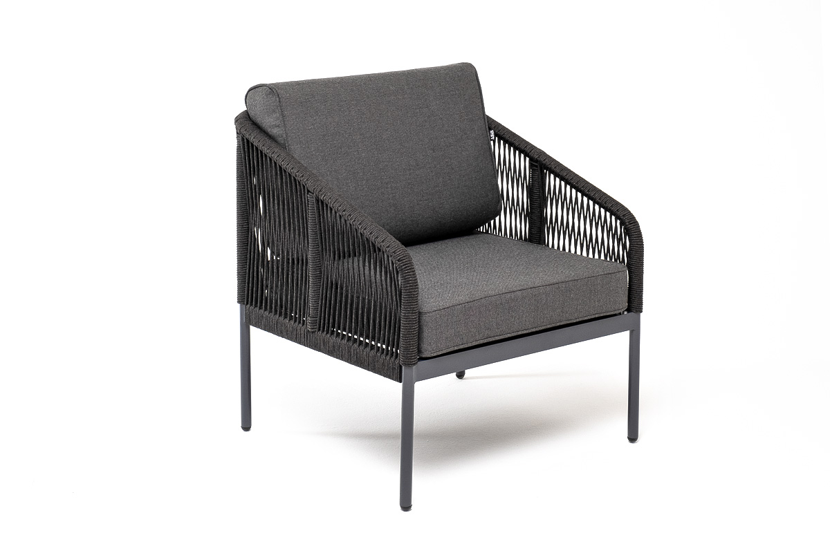 Плетеное кресло «Канны» идеально подходит для комфортного отдыха в саду или на балконе. Прочный каркас из алюминия окрашен в насыщенный темно-серый (RAL7024) цвет порошковой износостойкой краской. Покрытие прочное, устойчивое к возникновению сколов и ржавчины.