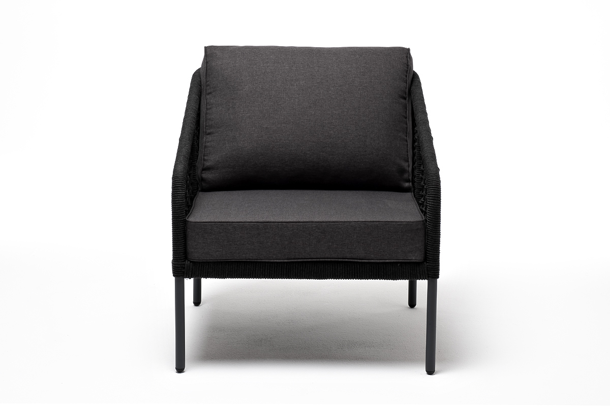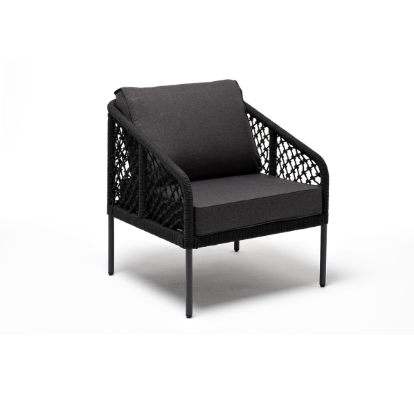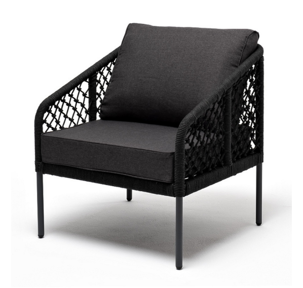 Кресло «Канны» с узловым плетением из роупа идеально подходит для комфортного отдыха в саду или на веранде.