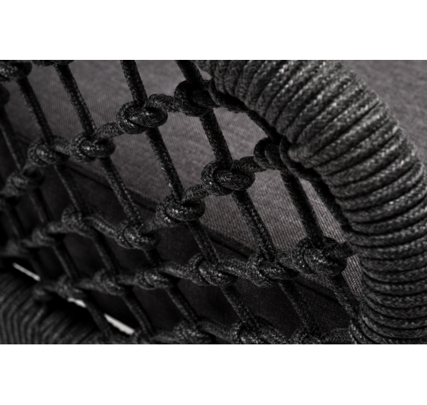На боковинах - оплетка из синтетических лент, выполненных из полиэфирных волокон высокой прочности. Цвет плетения - темно-серый (RAL7024). Вид плетения - узелковый, создавался вручную.