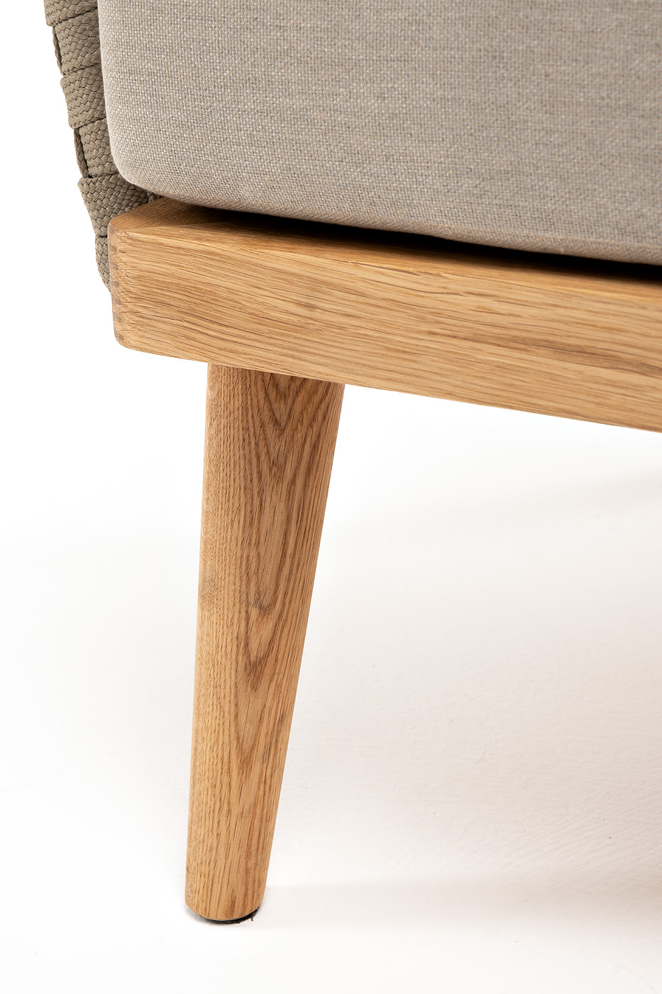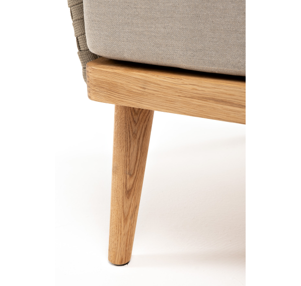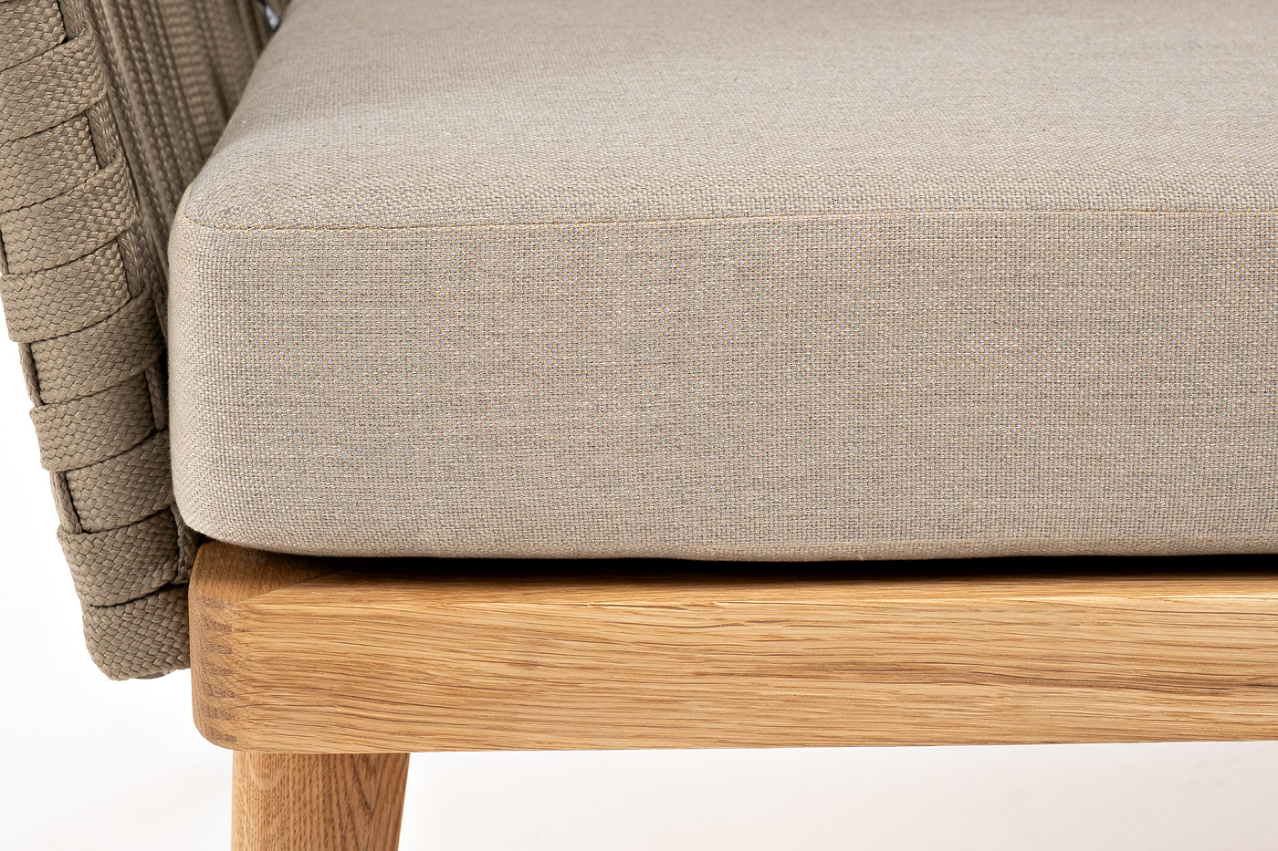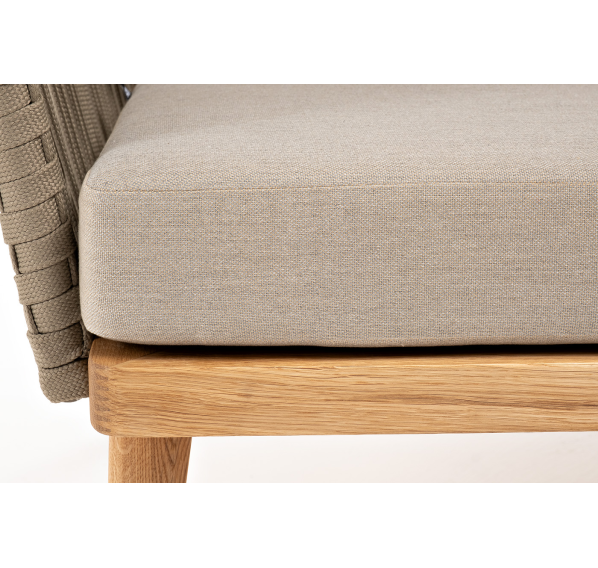 На боковинах - оплетка из синтетических лент, выполненных из полиэфирных волокон высокой прочности. Цвет плетения - серо-коричневый. Тип ткани - рогожка. Основание - дуб.