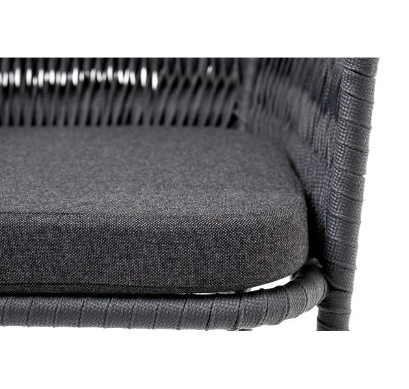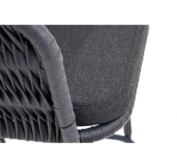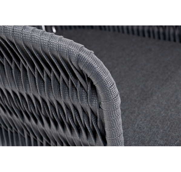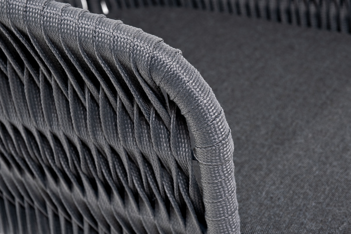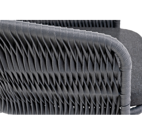 Каркас вручную оплетен серым роупом - эластичными синтетическими лентами из высокопрочных полиэфирных волокон.