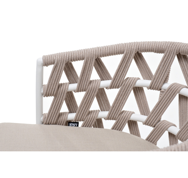 Каркас вручную оплетен бежевым роупом - эластичными синтетическими лентами из высокопрочных полиэфирных волокон.
