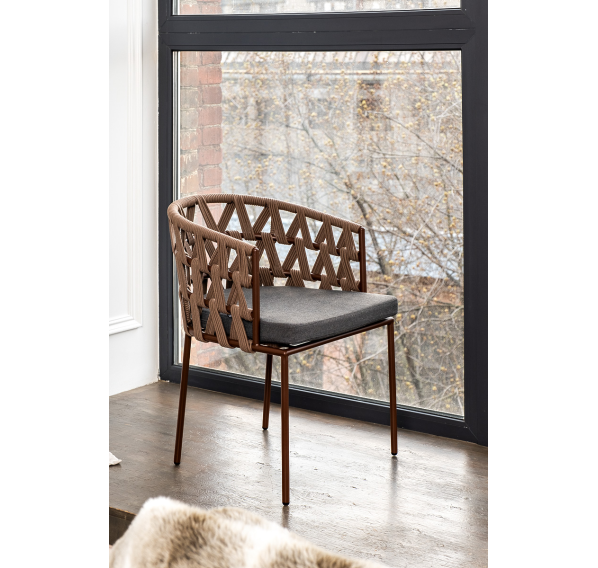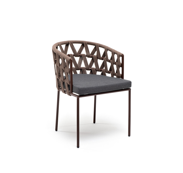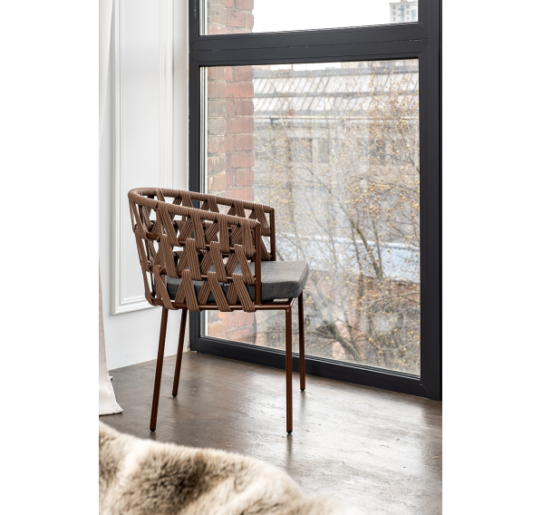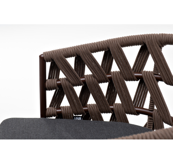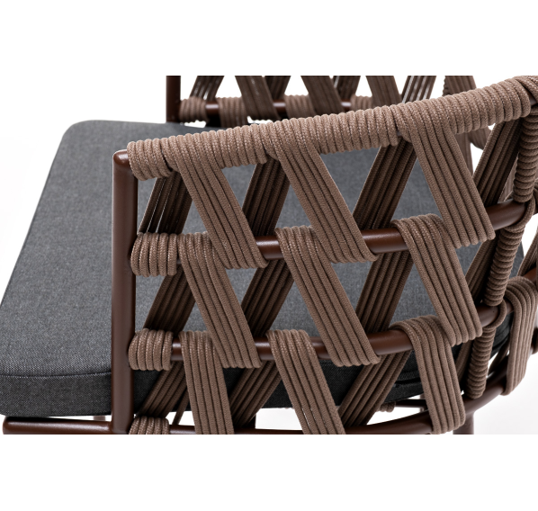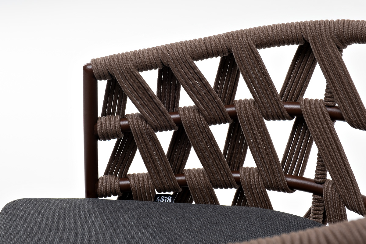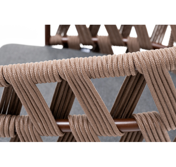 Каркас вручную оплетен коричневым (RAL8016) роупом - эластичными синтетическими лентами из высокопрочных полиэфирных волокон.