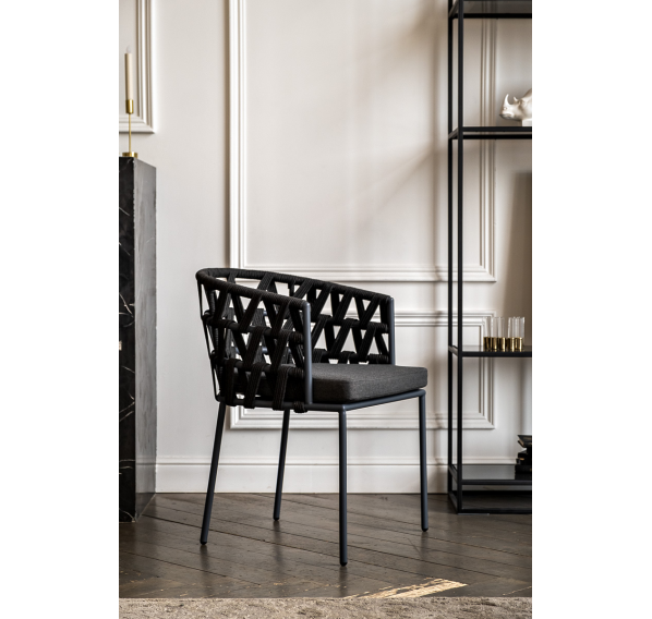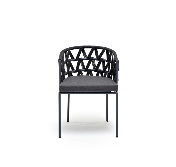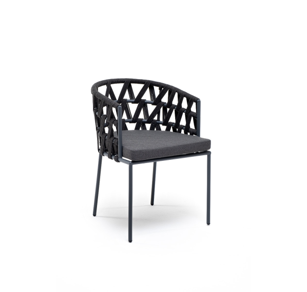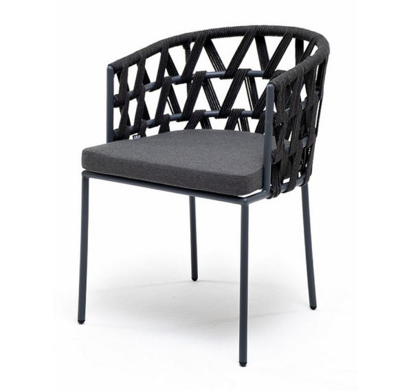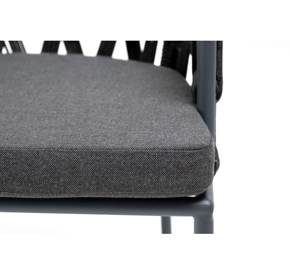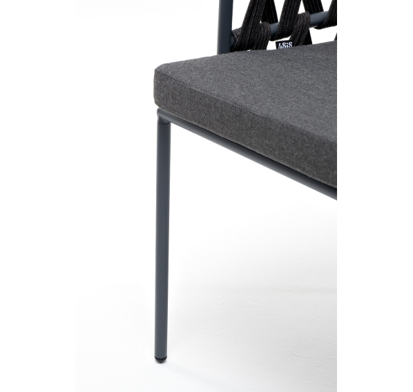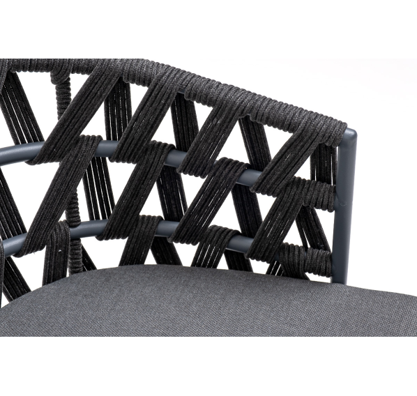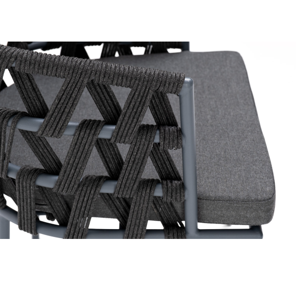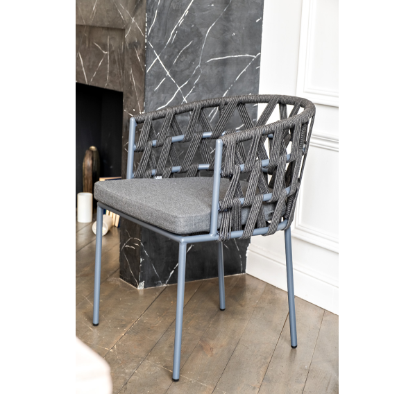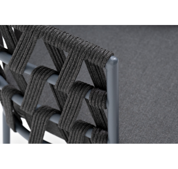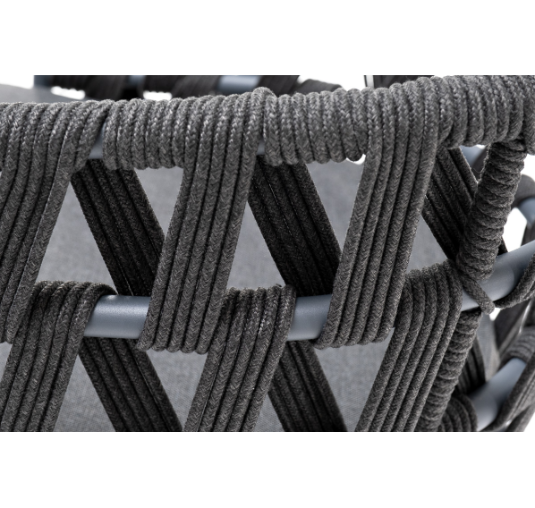 Каркас вручную оплетен темно-серым роупом - эластичными синтетическими лентами из высокопрочных полиэфирных волокон.