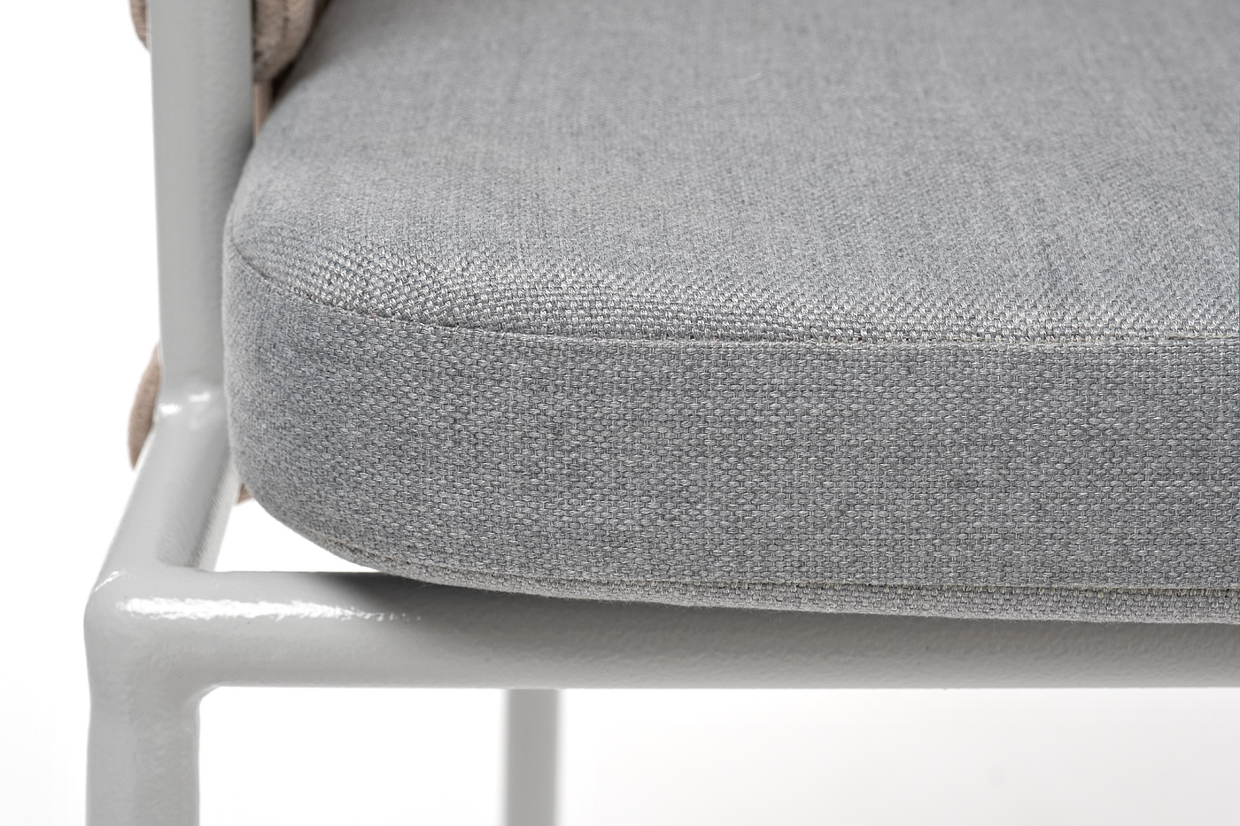 В комплект входит подушка со съёмным чехлом из 100% влагоотталкивающего полиэстера светло-серого цвета.