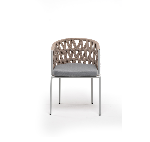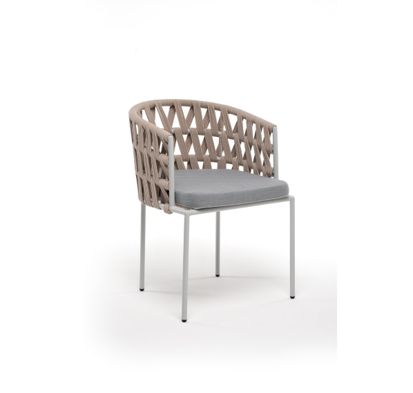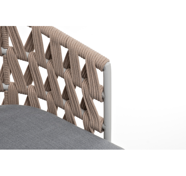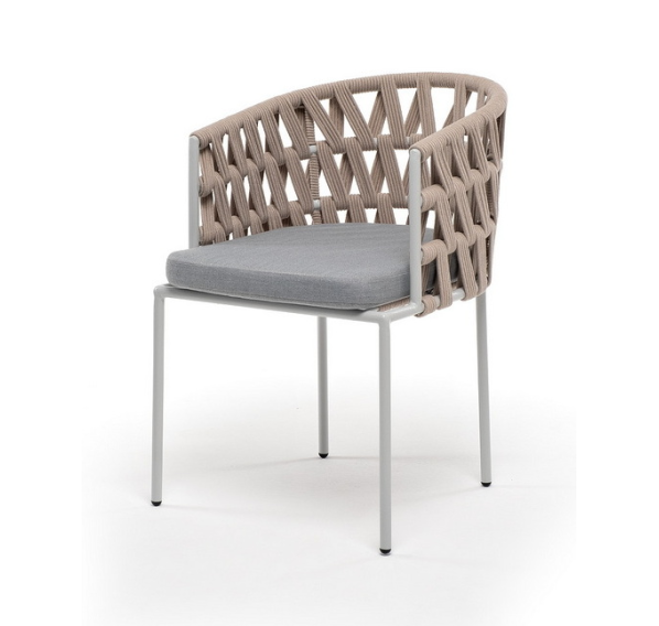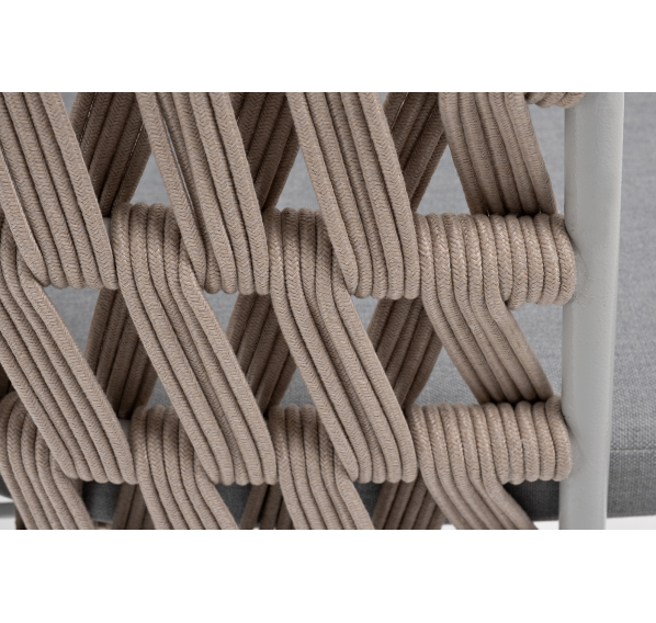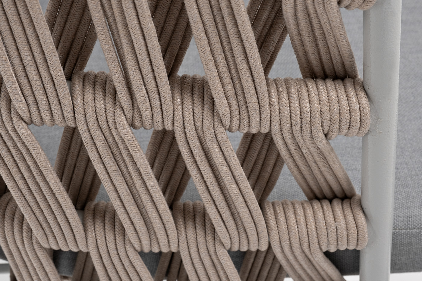 Каркас вручную оплетен бежевым роупом - эластичными синтетическими лентами из высокопрочных полиэфирных волокон.