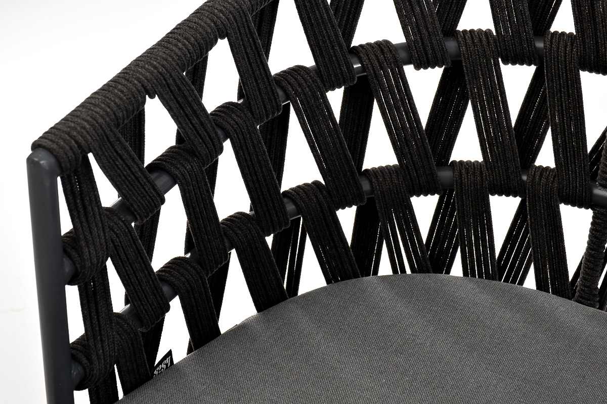 Плетеный стул «Диего» представляет собой удобное и стильное решение для дома или сада. Изготовленный из прочного дубового каркаса и оплетки из роупа темно-серого цвета, этот стул является отличным выбором для долгосрочного использования.