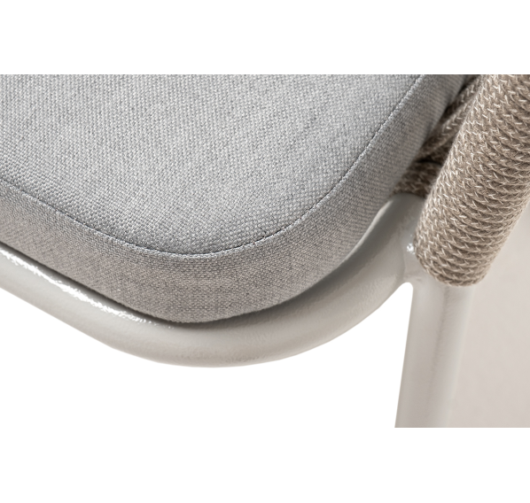 Подушка в комплекте со стулом выполнена из полиэстера 100% плотностью 300гр/м2 с влагоотталкивающей пропиткой. Это надежный и прочный материал, который легко очищается и устойчив к неблагоприятным погодным условиям.