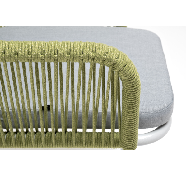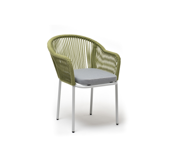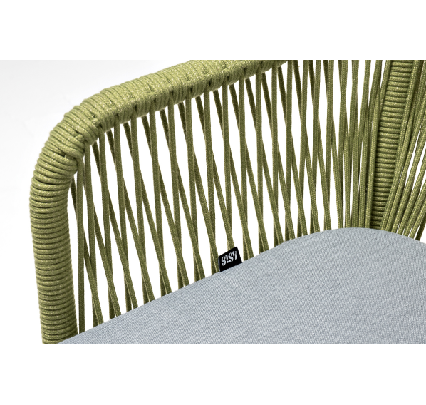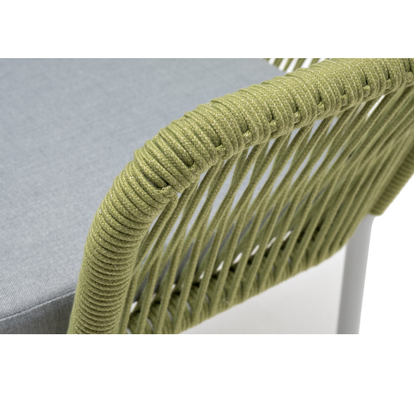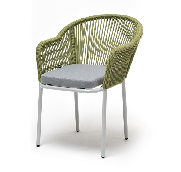Стальной каркас гарантирует прочность и надежность, а плетение из эластичных лент высокопрочных полиэфирных волокон создает удобное и уютное сидение. Цвет оплетки - салатовый меланж.