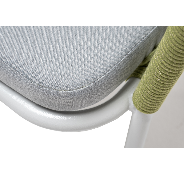 Подушка в комплекте со стулом выполнена из полиэстера 100% плотностью 300гр/м2 с влагоотталкивающей пропиткой. Это надежный и прочный материал, который легко очищается и устойчив к неблагоприятным погодным условиям.