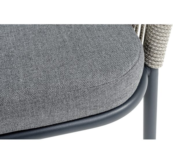 Подушка в комплекте со стулом выполнена из полиэстера 100% плотностью 300гр/м2 с влагоотталкивающей пропиткой. Это надежный и прочный материал, который легко очищается и устойчив к неблагоприятным погодным условиям.