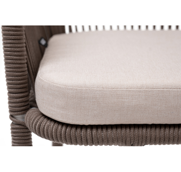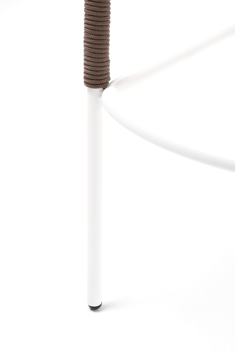 Барный стул из коллекции «Марсель» представлен в виде стального каркаса, оплетенного вручную эластичными синтетическими лентами из высокопрочных полиэфирных волокон - роуп коричневый.